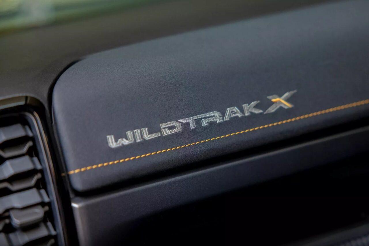 ภายในมีดีเทลเล็กน้อยด้วยสัญลักษณ์ Wildtrak X บริเวณฝาเปิดบนชุดคอนโซลหน้าแบบหุ้มหนังกลับ Terra suede เดินด้ายส้ม Cyber Orange เบาะนั่งกึ่งหนังแท้ผสมหนังกลับ Miko suede เดินด้ายส้ม อัปเกรดลำโพงมาใช้แบรนด์ Bang & Oulfsen ให้ถึง 10 จุด