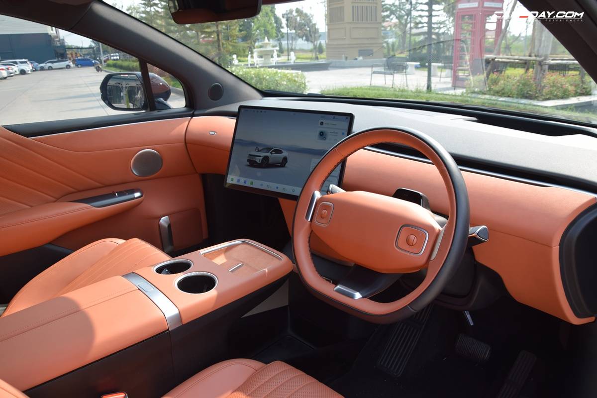 ภายในหรูสง่าแบบเดียวกับรถเก๋งพร้อมความโดดเด่นด้วย พร้อมโทนสีภายในสีส้มดูสบายตาสะอาดตาอย่างดีเลยทีเดียวภายในดูแห้งแล้งมีแต่พวงมาลัยกับจอเพราะฟังก์ชันการใช้งานต่างๆรวมถึงสตาร์ทะลุดับรถ ไปรวมในจอสัมผัสขนาดใหญ่ 15.4 นิ้ว โดยตัวจรอเป็นแนวนอนที่เอนเข้าหาคนขับสะดวกสบายในการมองเห็นพร้อมระบบนำทางแอปพลิเคชันความบันเทิงแบบออนไลน์ แต่ยังไม่สามารถเชื่อมต่อ Android Auto ได้ อัปเดตซอฟต์แวร์ออนไลน์ (OTA) พร้อมลำโพง 18 จุด