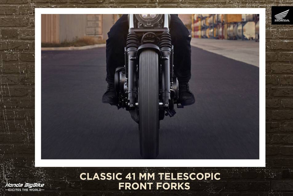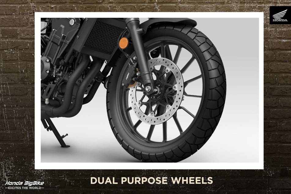 New CL500 ขุมพลัง 500 ซีซี เร้าใจทุกเส้นทางด้วยระบบระบายความร้อนด้วยน้ำและแอสซิส สลิปเปอร์คลัตช์ ขับขี่นุ่มนวลพร้อมสมรรถนะเหนือชั้น โดดเด่นด้วยโช้กอัพหน้า 41 มม. พร้อมยางหุ้มสไตล์คลาสสิก ระยะยุบ 150 มม. ซับแรงกระแทกได้เต็มพลัง ล้อหน้าขนาด 19 นิ้ว ล้อหลัง 17 นิ้ว พร้อมยาง Dual Purpose ท้าทายได้ทั้งทางดำและทางฝุ่น ควบคุมมั่นใจด้วยแฮนเดิลบาร์ยกสูง เบาะ Scrambler นั่งสบายในทุกเส้นทาง ถังน้ำมันขนาด 12 ลิตรดีไซน์เฉพาะ พร้อม Rubber Pad เพิ่มการยึดเกาะ พร้อมลุยทุกเส้นทางผจญภัย