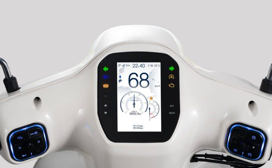 สำหรับฟีเจอร์มาพร้อมระบบไฟ LED รอบคัน และหน้าจอเรือนไมล์ดิจิตอลแนวตั้ง แสดงครบทุกฟังก์ชั่นข้อมูลเกี่ยวกับตัวรถ นอกจากนี้ยังมาพร้อมกับช่องเสียบสายชาร์จ USB type-C และพื้นที่เก็บสัมภาระใต้เบาะขนาด 20 ลิตร