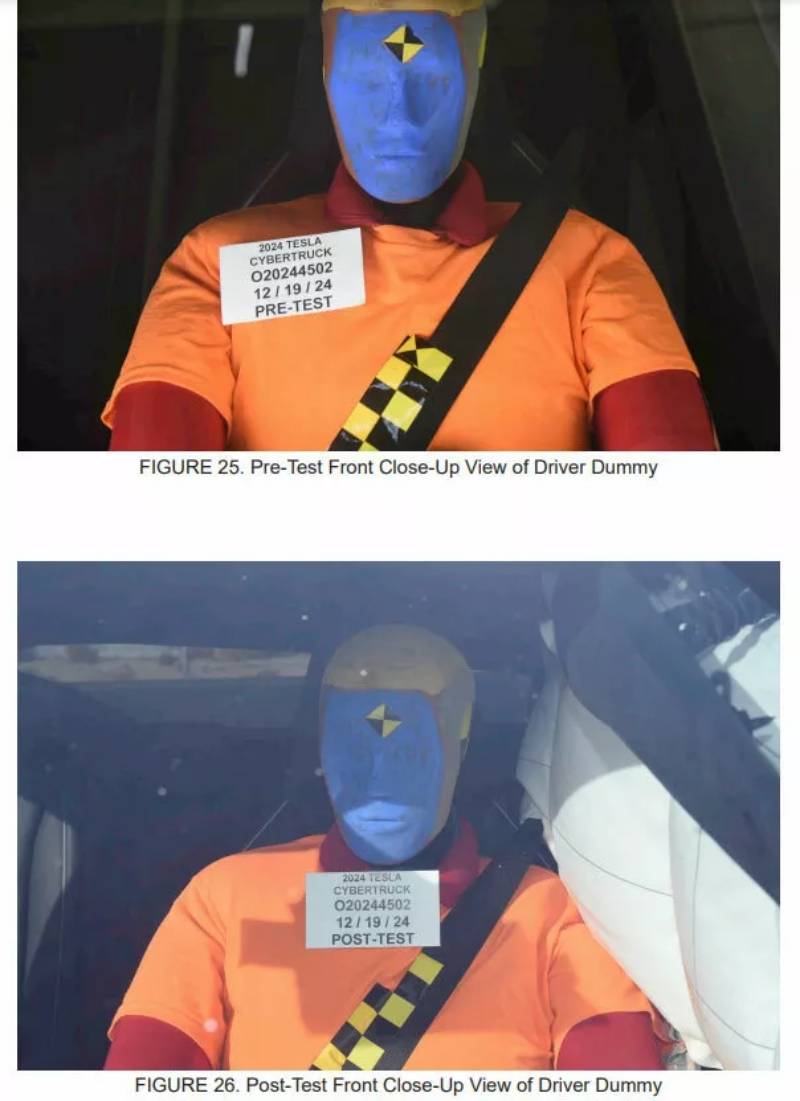 การทดสอบดำเนินการโดยใช้รถ Cybertruck รุ่นปี 2024 ชื่อ Cyberbeast และดำเนินการเมื่อเดือนธันวาคมปีที่แล้วโดยบริษัท Applus IDIADA KARCO Engineering จากแคลิฟอร์เนีย แม้ว่าผลการทดสอบจะใช้เวลาพอสมควร แต่การทดสอบแรงกระแทกของแผงกั้นด้านหน้าแสดงให้เห็นว่า “กระจกบังลมหน้ารถสามารถยึดอยู่กับตัวรถได้ 100% และไม่มีการบุกรุกเข้าไปในโซนที่ได้รับการปกป้องของกระจกบังลมหน้ารถ” นอกจากนี้ ยังระบุด้วยว่าประตูทั้งฝั่งคนขับและผู้โดยสารยังคงปิดอยู่ระหว่างที่เกิดแรงกระแทก และสามารถใช้งานได้หลังเกิดการชน