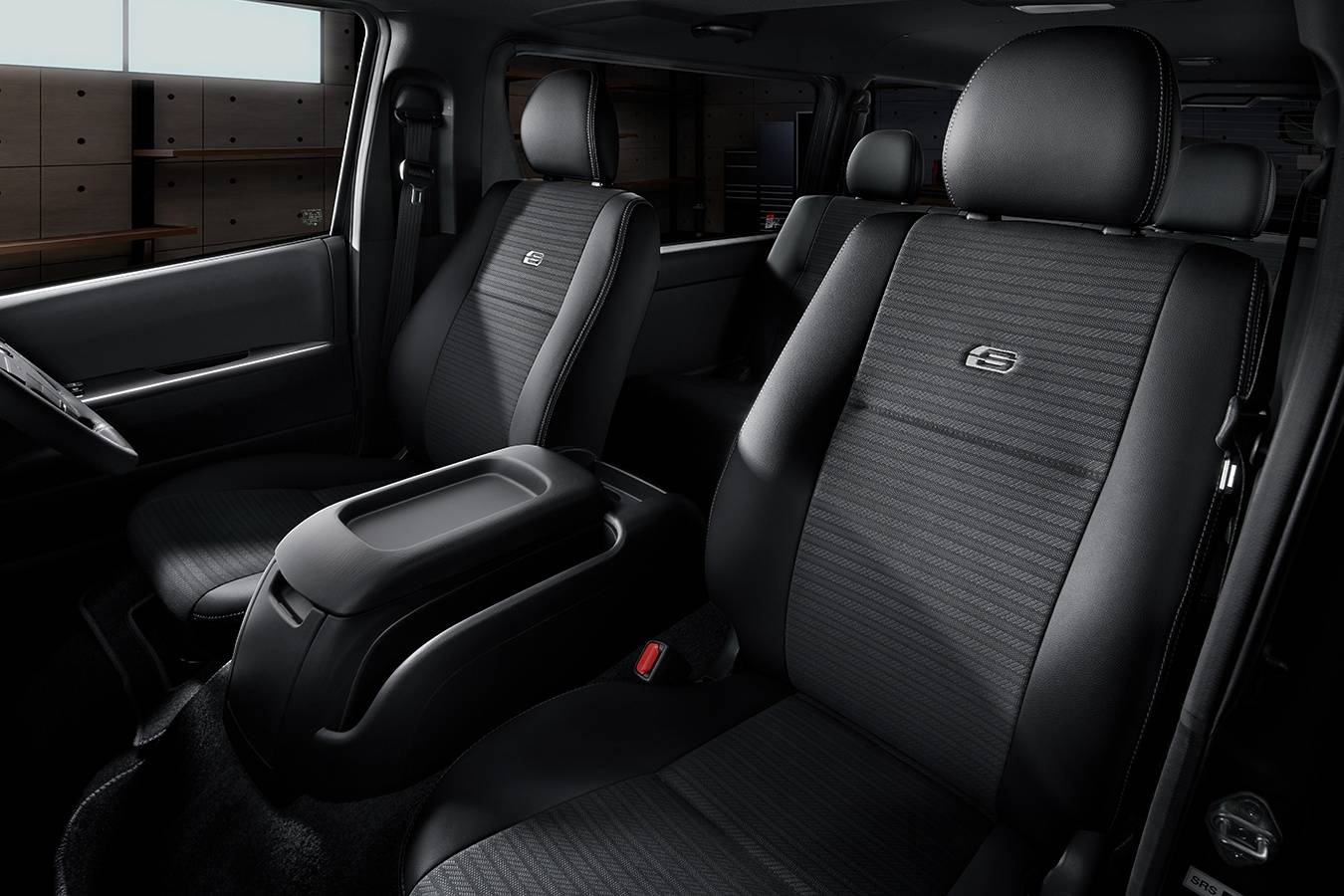 เบาะนั่งหุ้มหนังสังเคราะห์+ผ้าไตรคอต เดินด้ายคู่ปักโลโก้ S กลางเบาะคู่หน้า สครัพเพลทบริเวณชายประตูคู่หน้าติดตราเฉลิมฉลองครบรอบ 20 ปี และไฟเรืองแสงตรา HIACE บริเวณบันไดขึ้นตรง ประตูสไลด์ ซ้าย-ขวา และที่กั้นเหล็กเบาะหลัง 3 ที่นั่งแบบสีดำ ปุ่ม Push Start และกุญแจรีโมทติดตรา S พร้อมออปชันเดิมทั้ง มาตรวัดเรืองแสง OPTITRON เครื่องปรับอากาศอัตโนมัติ กระจกไฟฟ้าพร้อมเซ็นทรัลล็อก กระจกมองข้างปรับ-พับด้วยไฟฟ้า และวิทยุ FM-AM