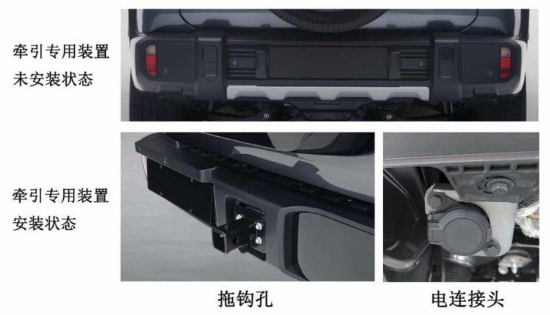 รถออฟโรดที่แข็งแกร่งคันนี้มีแบตเตอรี่ LFP ที่ผลิตโดย CALB ความสามารถของมันยังไม่ได้รับการเปิดเผย จากข้อมูลก่อนหน้านี้ SUV คันนี้จะมีขนาดแบตเตอรี่ให้เลือกสองรุ่น: 18.4 kWh และ 35.1 kWh ทำให้น้ำหนักรวมอยู่ที่ 2,505 – 2,800 กม. ความสามารถลากจูงได้มากถึง 1,600 กก.