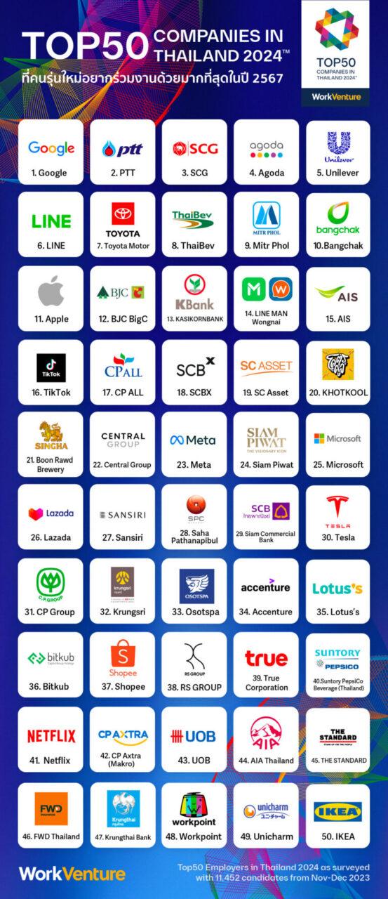 ผลสำรวจนี้จัดทำขึ้น WorkVenture ที่ปรึกษาและผู้นำด้านการสร้างแบรนด์นายจ้างให้กับบริษัทชั้นนำในไทย เปิดผลสำรวจจากคำถามว่าใครเป็นสุดยอดนายจ้างในดวงใจของคนทำงานรุ่นใหม่ เพื่อรับฟังเสียงคนทำงานรุ่นใหม่ ว่าพวกเขามีความคิดต่อการทำงาน องค์กร และมีค่านิยมของการทำงานอย่างไร ดังนั้นผลสำรวจนี้ จึงแสดงให้เห็นถึงความตั้งใจในรอบปีที่ผ่านมาของนายจ้างในตลาดแรงงานไทย ว่าโดยรวมแล้วมีการเปลี่ยนแปลงไปในทิศทางไหน มีการพัฒนาที่ทำงานให้เหมาะสมกับตลาดแรงงานที่เปลี่ยน GEN คนทำงานไปเรื่อย ๆ หรือไม่ มุมมองจากภายนอกและภายในองค์กรสัมผัสได้ถึงการเปลี่ยนแปลงมากน้อยเพียงใด เพราะนั่นเป็นสิ่งสะท้อนที่สร้างการรับรู้ให้กับเหล่าคนทำงานที่กำลังมองหาที่ทำงานใหม่ในปัจจุบัน