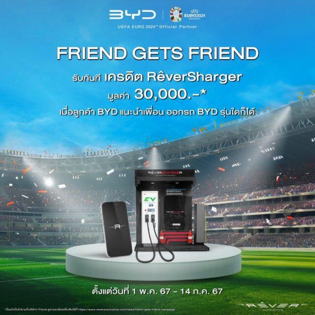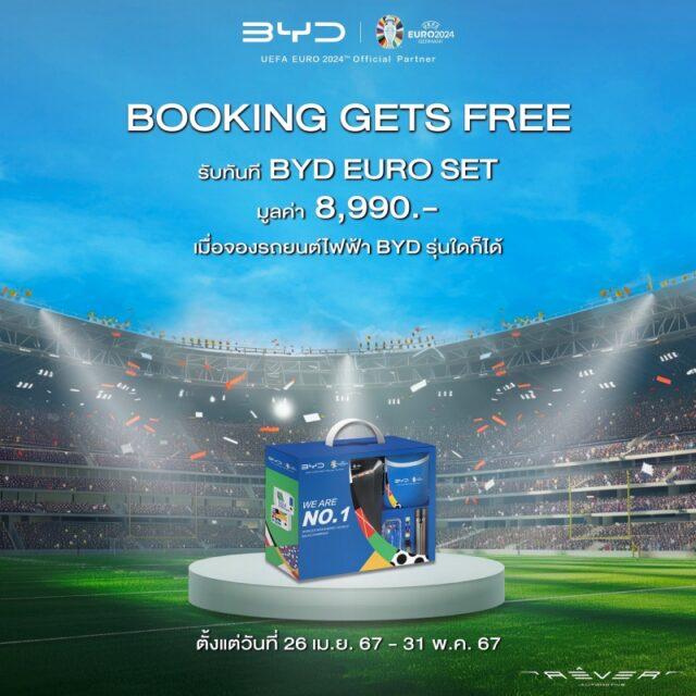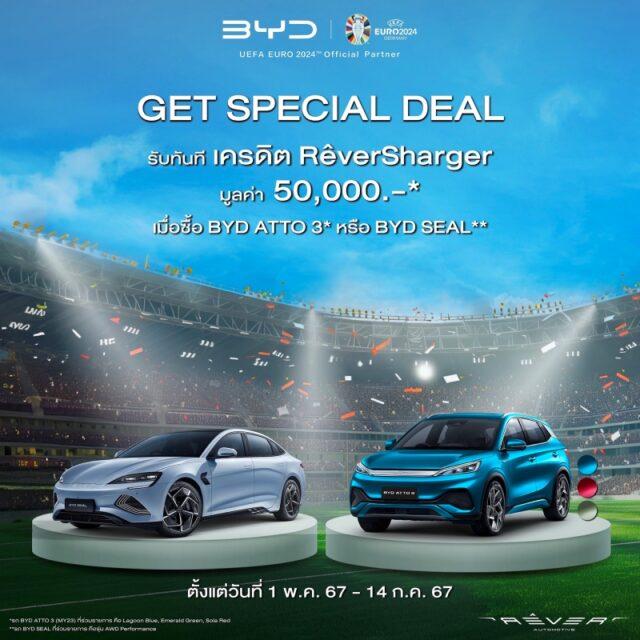 BYD ประเทศไทย พร้อมเดินหน้าขับเคลื่อนการเปลี่ยนประเทศไทยสู่สังคมยานยนต์ไฟฟ้าและความเป็นกลางทางคาร์บอน และในโอกาสเทศกาลการแข่งขันฟุตบอลยูโร 2024 ที่มาถึงนี้ ทาง BYD ได้มีโอกาสเป็นผู้สนับสนุนหลักอย่างเป็นทางการ เรเว่ฯ จึงขอส่งมอบความพิเศษด้วยแคมเปญ BYD Euro Privilege สุดยิ่งใหญ่ต้อนรับยูโร 2024 รับถึง 3 ต่อ มอบสิทธิประโยชน์สุดคุ้มค่าให้แก่ผู้ใช้ BYD ทุกท่าน เพียงชวนเพื่อนหรือคนรู้จักซื้อรถยนต์ไฟฟ้า BYD ทุกรุ่น รับฟรี! 30,000 เครดิตสำหรับชาร์จรถไฟฟ้า ณ จุดชาร์จของ RÊVERSHARGER รวมถึงชุดของสมนาคุณสุดเอ็กซ์คลูซีฟ ลิขสิทธิ์แท้ UEFA EURO 2024 อีกมากมาย โดยเครดิตที่ได้ยังสามารถใช้ร่วมกับโปรโมชัน Plug and Charge ชาร์จไฟอย่างจุใจได้ในราคาเพียง 4 บาท/หน่วย ซึ่งขยายโปรโมชันไปจนถึง 14 กรกฎาคมนี้ได้อีกด้วย ผู้ที่สนใจสามารถเข้าร่วมแคมเปญได้ตั้งแต่วันที่ 1 พฤษภาคม – 14 กรกฎาคม 2567