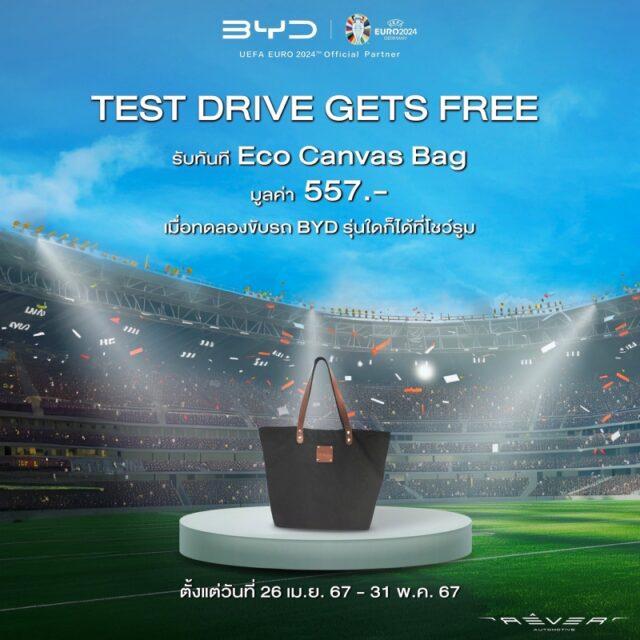 • เมื่อ Test Drive ณ โชว์รูมของ BYD รับทันที กระเป๋า Eco Canvas มูลค่ากว่า 557 บาท หรือลูกฟุตบอลยูโร สุดพรีเมียม มูลค่ากว่า 659 บาท