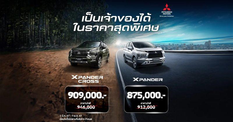 Mitsubishi Xpander และ Xpander Cross รับราคาพิเศษ พร้อมเลือกรับข้อเสนอพิเศษเติมน้ำมันฟรี 1 ปี แพ็กเกจบำรุงรักษา 5 ปี มูลค่ารวมสูงสุดกว่า 120,000 บาท