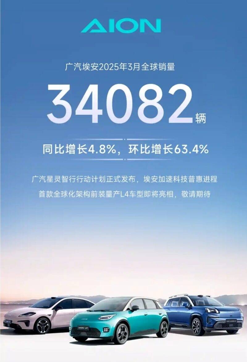 อันดับที่สาม GAC Aion ส่งมอบรถไปแล้ว 34,082 คัน เพิ่มขึ้น 4.8% เมื่อเทียบปีต่อปี และ 63.4% เมื่อเทียบเดือนต่อเดือน ในช่วงไม่กี่เดือนที่ผ่านมา Aion ได้เปิดตัวรถรุ่นต่างๆ ทั่วโลก 3 รุ่น ได้แก่ Aion V รถ SUV ไฟฟ้า, Aion RT รถเก๋งไฟฟ้า และ Aion UT รถแฮทช์แบ็กไฟฟ้า นอกจากนี้ ยังมีการเปิดตัว Robotaxi ขับเคลื่อนอัตโนมัติระดับ 4 (L4) ของ Aion อย่างเป็นทางการที่งาน Shanghai Auto Show ที่จะถึงนี้ด้วย