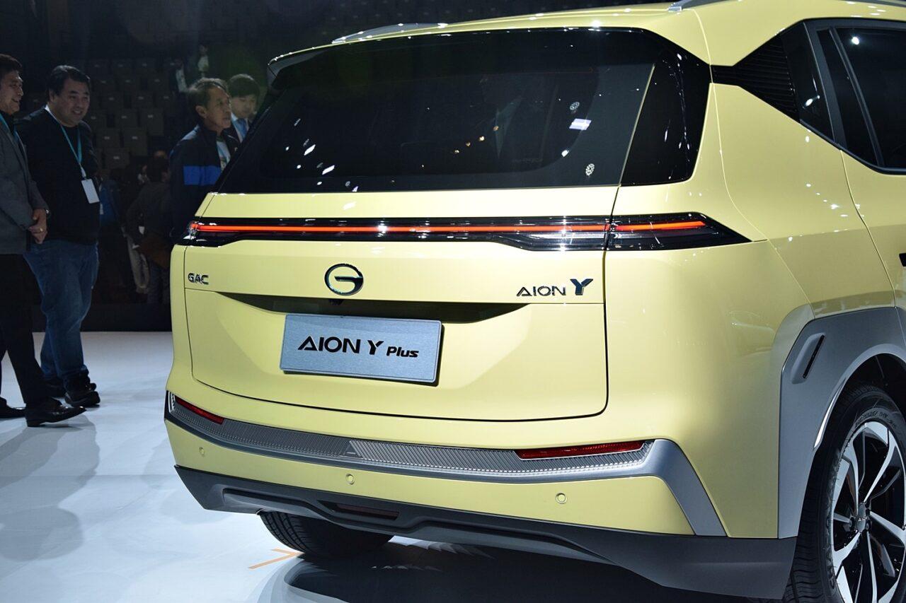 AION Y Plus เอสยูวีไฟฟ้าภายนอกหล่อด้วยกระจังหน้าทรงไดนามิก ชุดไฟหน้า LED ดีไซน์มีปีก Angel Wing พร้อมช่องระบายรูปสี่เหลี่ยมคางหมู ล้ออัลลอยขนาด 17 นิ้วหุ้มยางขนาด 215/55 R17 และขนาดใหญ่ 18 นิ้ว พร้อมยาง 215/50 R18 ไฟท้าย LED แนวยาว พร้อมหลังคารถแบบพาโนรามิกซันรูฟและราวหลังคาสถาปัตยกรรมแพลตฟอร์มไฟฟ้าบริสุทธิ์ AEP ชั้นนำของอุตสาหกรรม พร้อมความยาวตัวรถตั้งแต่ ความยาว 4,535 มิลลิเมตร ความกว้าง 1,870 มิลลิเมตร ความสูง 1,650 มิลลิเมตร ระยะฐานล้อ 2,750 มิลลิเมตร ความสูงใต้ท้องรถ 150 มิลลิเมตร และน้ำหนักรถ 1,735-1,765 กิโลกรัม