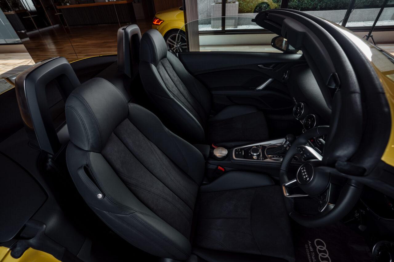 ทางด้าน Audi TT Roaster Final Icon Black สปอร์ตคูเป้เปิดประทุน ขับเคลื่อน 4 ล้อ quattro ตกแต่งเหมือน Audi TT Coupé Final Icon Black เด่นด้วยหลังคาผ้าพร้อมฟังก์ชันเปิด-ปิดด้วยระบบไฟฟ้า หลังคาผ้าใบความหนา 2 ชั้น ใช้งานสะดวกสบาย ใช้เวลาเปิดปิดเพียง 10 วินาทีเท่านั้น และสามารถกดเปิดปิดได้ระหว่างขับรถเมื่อใช้ความเร็วไม่เกิน 50 กิโลเมตรต่อชั่วโมง Rollover bar และตกแต่งด้วยสีอลูมิเนียม TT Roadster