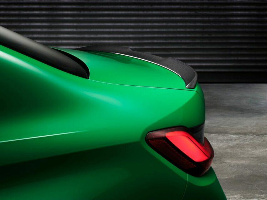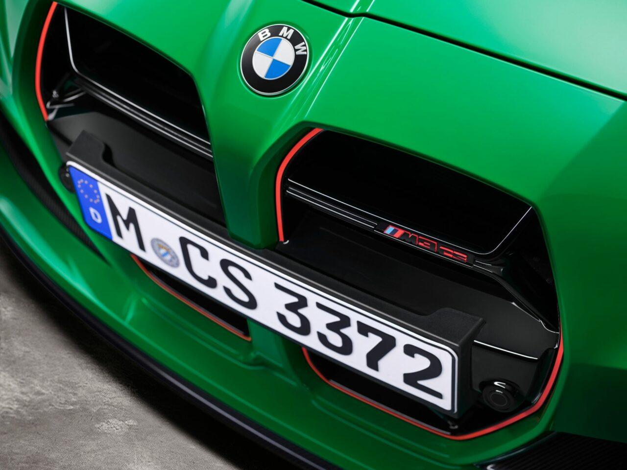 พร้อมกระจังหน้าทรงไตคู่ขนาดใหญ่ตัดกับช่องระบายอากาศรูปตัว Y แนวนอน ขลิบสีแดง ไฟหน้า Adaptive LED แบบ BMW Laserlight สีเหลือง ฝากระโปรงหน้าออกแบบพิเศษมีช่องระบายอากาศทำจากคาร์บอนไฟเบอร์ หลังคาคาร์บอนไฟเบอร์พร้อมครีบสีดำ