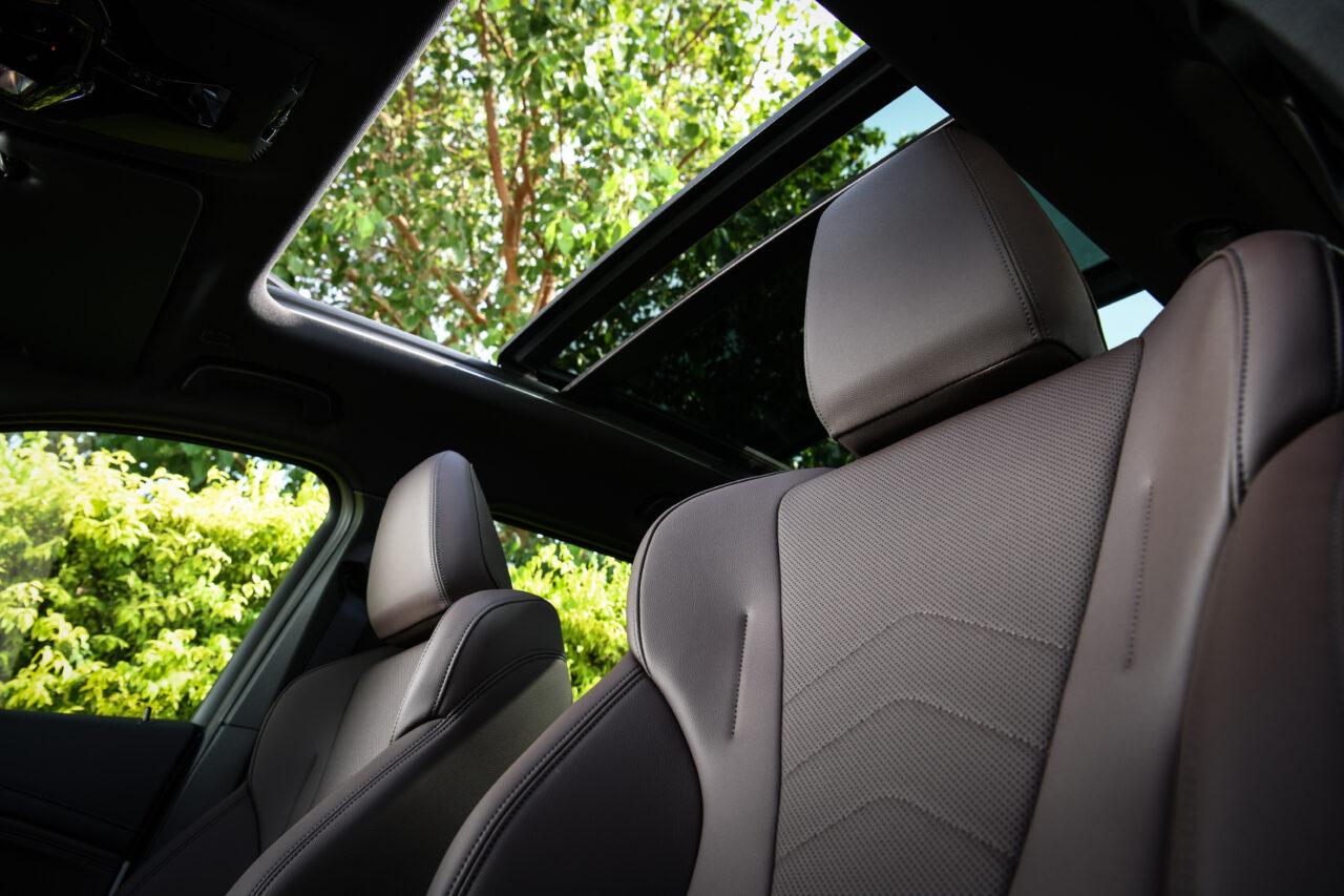 ภายในกว้างขวางและหรูหราด้วยวัสดุพรีเมียมและอุปกรณ์ทันสมัยตกแต่งภายในด้วยแผงตกแต่งภายในด้วยอลูมิเนียมลาย Hexacube Pale M คอนโซลด้านบนแบบ Luxury ชุหลังคาภายในดีไซน์ M สี Anthracite ไฟส่องสว่างภายในห้องโดยสาร มอบบรรยากาศที่ประณีตหรูหรา เบาะนั่งตอนหน้าพร้อมระบบทำความร้อนดีไซน์สปอร์ตบุด้วยหนังเบาะที่นั่งแบบ Sensatec Perforated สีน้ำตาลเข้ม Mocha เบาะนั่งตอนหน้าปรับไฟฟ้าพร้อมระบบจำตำแหน่งเฉพาะฝั่งคนขับ เบาะหลังพับได้แบบ 40:20:40 ที่มีพื้นที่ด้านท้ายมากถึง 490-1,495 ลิตร และกระจกมองหลังตัดแสงอัตโนมัติ