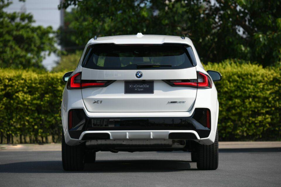 แนะนำรุ่น BMW X1 xDrive30e M Sport เอสยูวีเล็กประกอบไทยผสานพลังแห่งการขับขี่อันเป็นเอกลักษณ์เข้ากับจุดเด่นของเทคโนโลยีปลั๊กอินไฮบริดได้เป็นอย่างดีพร้อมลดการปลดปล่อยมลพิษ และยังเพิ่มประสิทธิภาพการเผาผลาญเชื้อเพลิงให้ดียิ่งขึ้นยังช่วยปลุกเร้าผู้ขับขี่ที่มองหาสมรรถนะการขับขี่ที่เหนือชั้นและคำนึงถึงสิ่งแวดล้อม โดดเด่นด้วยไฟหน้า Adaptive LED มาเป็นมาตรฐานพร้อมกับระบบปรับการทำงานไฟสูงอัตโนมัติ (High-beam assistant) กระจังหน้าทรงไตคู่ขนาดใหญ่ที่เกือบเป็นสี่เหลี่ยม เส้นสายรูปตัว X ที่แผ่ออกไปด้านข้าง และแถบโครเมียมอันสะดุดตาที่ช่องรับอากาศด้านล่าง ล้ออัลลอย M ขนาด 19 นิ้ว ลาย Double-spoke แบบสลับสีพร้อมยางขนาด 245/45 R19 ราวหลังคาแบบ Aluminium Satinated