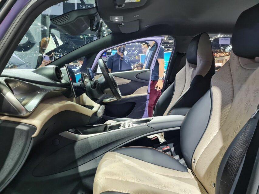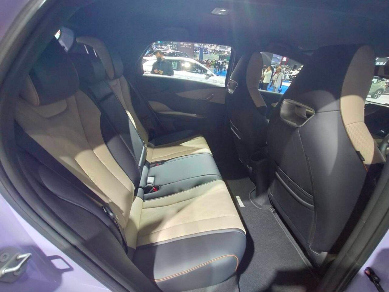 ภายในที่กว้างสบายแบบ 5 ที่นั่ง ใช้สีทูโทน Brown + Black ดูล้ำสมัย มาพร้อม Bucket Seat ทรงสปอร์ต พวงมาลัยมัลติฟังก์ชัน 3 ก้าน มือจับเปิดประตูออกแบบคล้ายครีบของโลมา จอในส่วนของอุปกรณ์ Infotainment ใหญ่เต็มตาด้วยขนาด 12.8 นิ้ว พร้อมช่องเสียบ USB 4 จุด มาตรวัดดิจิทัล 5 นิ้ว เบาะนั่งคนขับปรับธรรมดาแบบ 6 ทิศทาง และคนนั่ง 4 ทิศทาง เบาะหลังสามารถพับได้ในอัตราส่วน 40:60 และกุญแจแบบ Keyless Entry และ Keyless Start