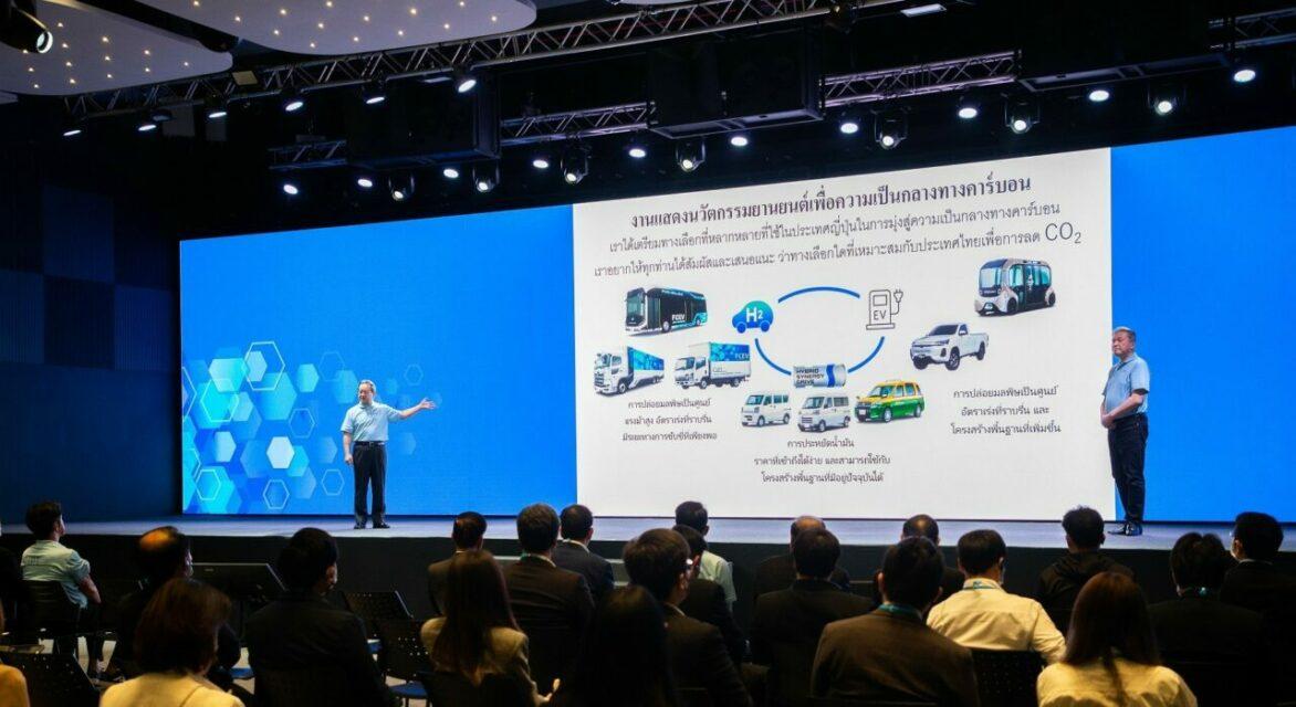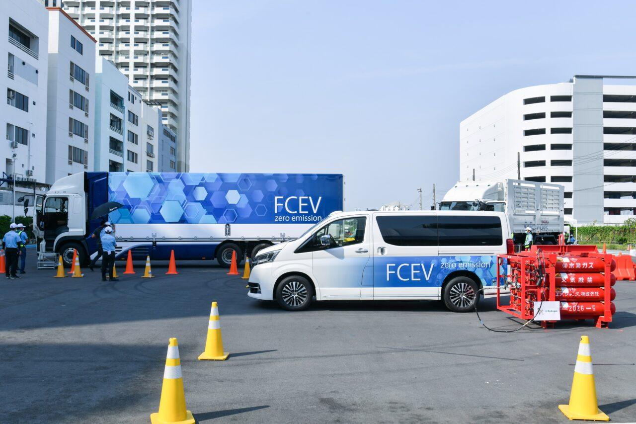 ยานยนต์รุ่นหลักที่จัดแสดงภายในงาน TOYOTA SORA HINO FCEV Heavy Duty Truck, ISUZU ELF FCEV Light Duty Truck, TOYOTA HILUX REVO BEV Concept, TOYOTA LPG-HEV Taxi Concept, SUZUKI EVERY Small Van, TOYOTA e-Palette, YAMAHA H2 ROV*(Buggy)