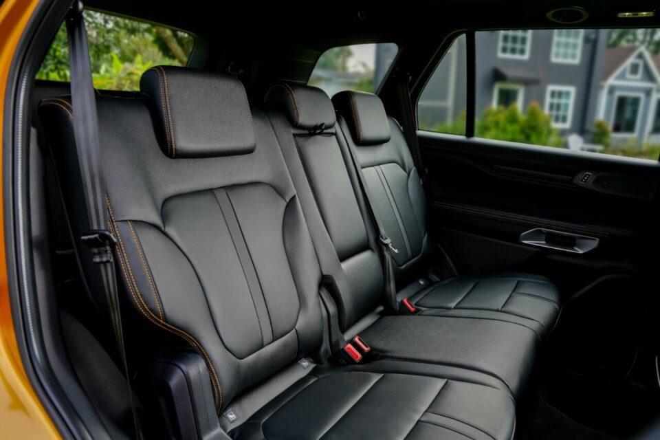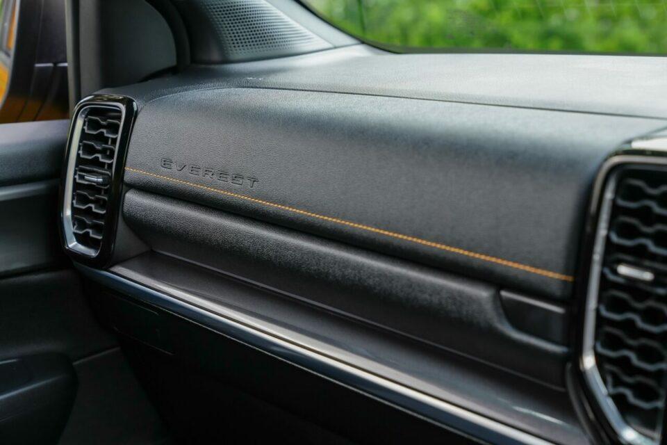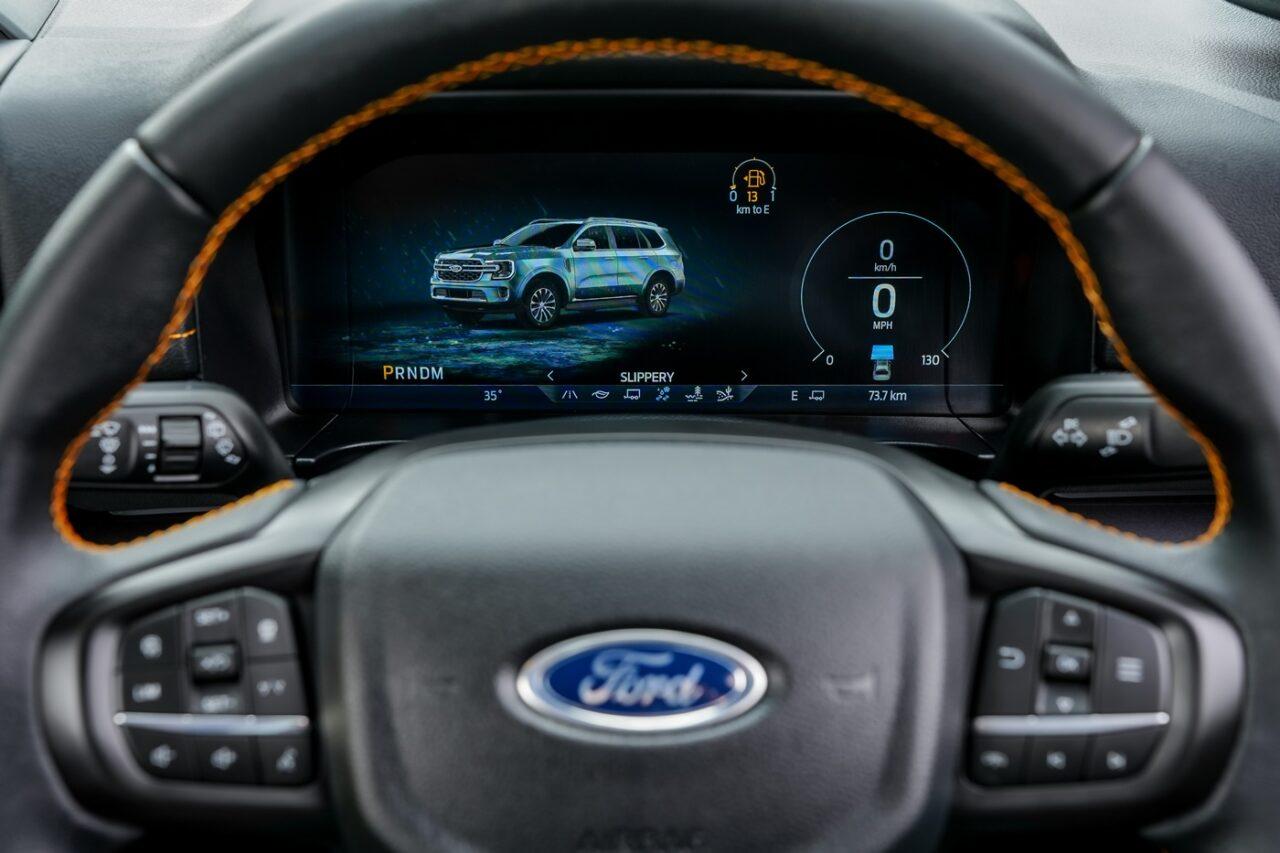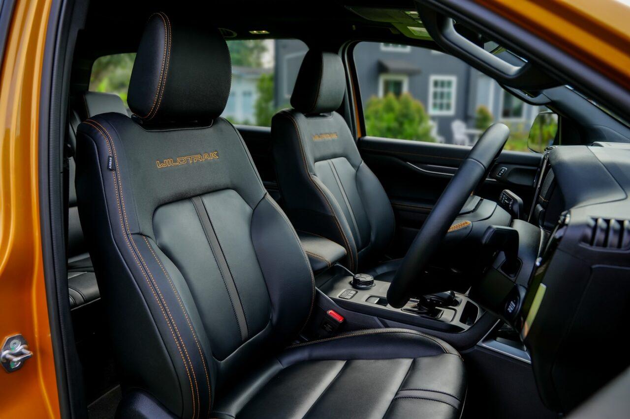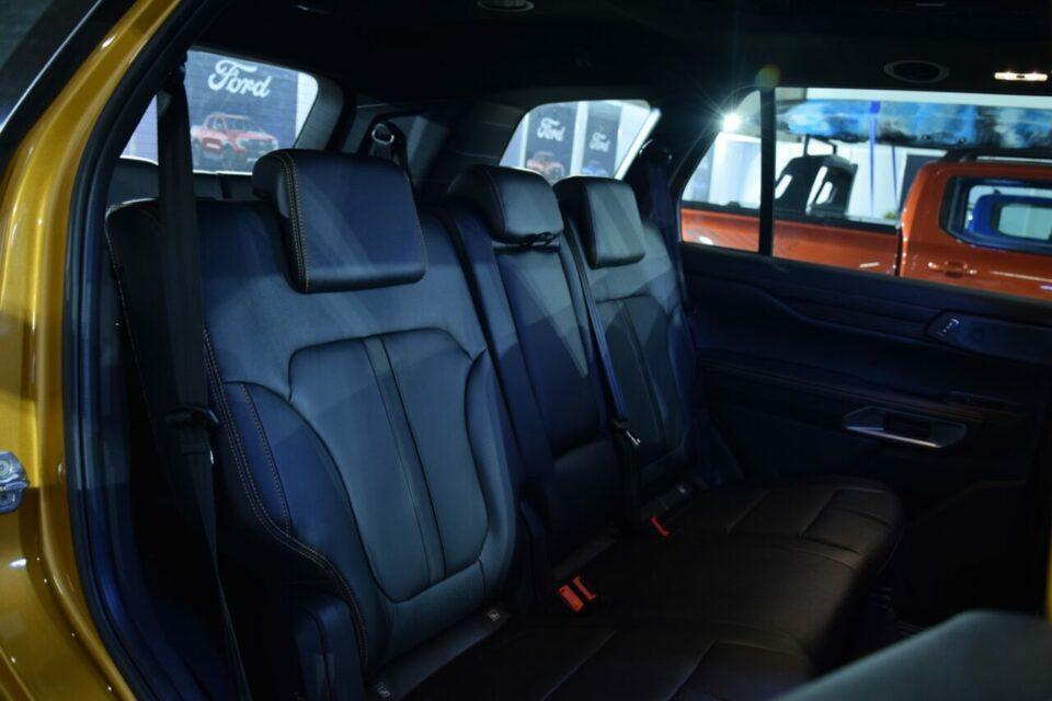 ภายในแน่นอนว่ายกมาจาก Ford Ranger Wildtrak เกือบทั้งหมดตั้งแต่เบาะนั่งกึ่งหนังแท้สีดำ เดินด้ายสีส้ม ปักชื่อ Wildtrak ไว้กลางตัวเบาะแบบปรับคู่หน้าด้วยไฟฟ้า 8 ทิศทาง พวงมาลัยมัลติฟังก์ชันสามก้านหุ้มหนังเดินด้ายส้ม เบาะนั่งแถวที่ 2 ปรับเลื่อนได้ และพับได้แบบแบ่ง 60:40 ส่วนเบาะนั่งแถวที่ 3 แบ่งที่นั่งในอัตราส่วน 50:50 พับไฟฟ้า ที่สำคัญเบาะแถวที่ 2 และ 3 ยังพับได้แบบแบนราบเพื่อการบรรทุกสัมภาระยาวๆ