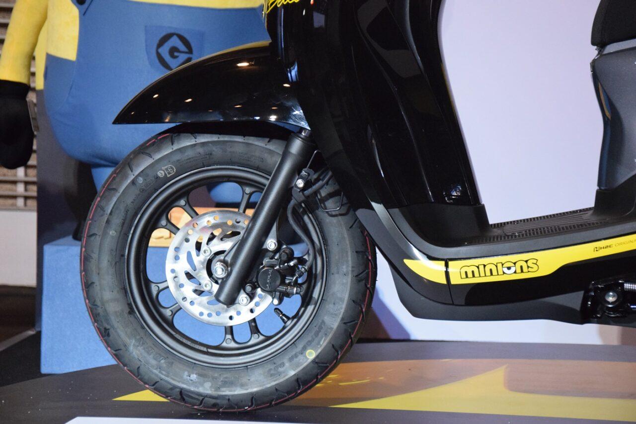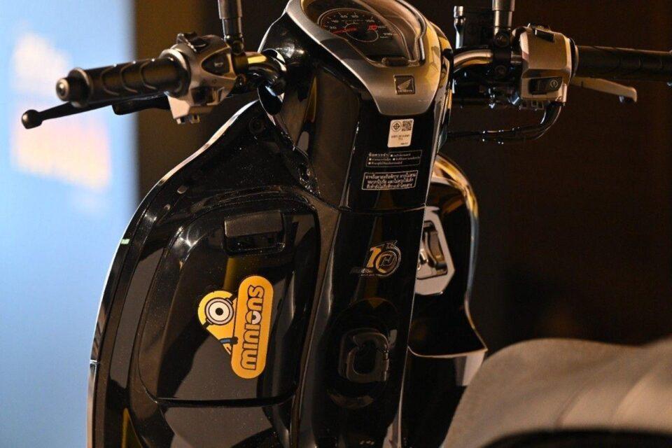 และความน่ารักของตัวการ์ตูนมินเนี่ยน โดดเด่นด้วยลายกราฟิกสีเหลืองสด ตัดกับสีดำของตัวรถ ให้ความรู้สึกสดใส แฝงสไตล์ความเป็นลูกสมุนตัวจี๊ดแบบฉบับมินเนี่ยน วางจำหน่ายพร้อมหมวกกันน็อกดีไซน์พิเศษในธีมมินเนี่ยนแบบเดียวกับตัวรถ พร้อมวางจำหน่ายเร็วๆ นี้ในราคา 55,500 บาท