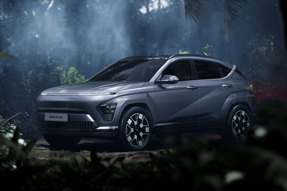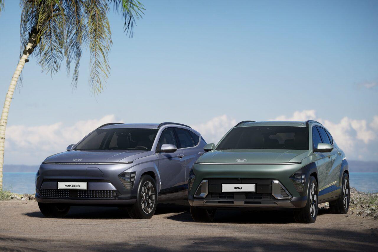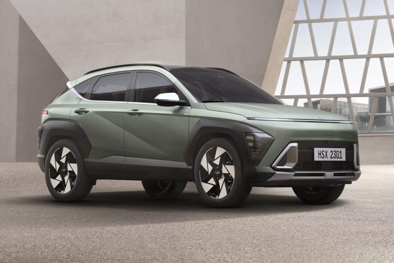 พร้อมซุ้มล้อสีดำคาดเข้ม เส้นสายด้านข้างคล้ายๆกับรุ่น Kona เจนที่แล้ว พร้อมราวหลังคา เสาอากาศครีบฉลาม และด้านท้ายที่เป็นไฟท้าย LED แนวยาวที่เป็นไฟเบรกไปถึงแก้มด้านท้ายสองข้าง