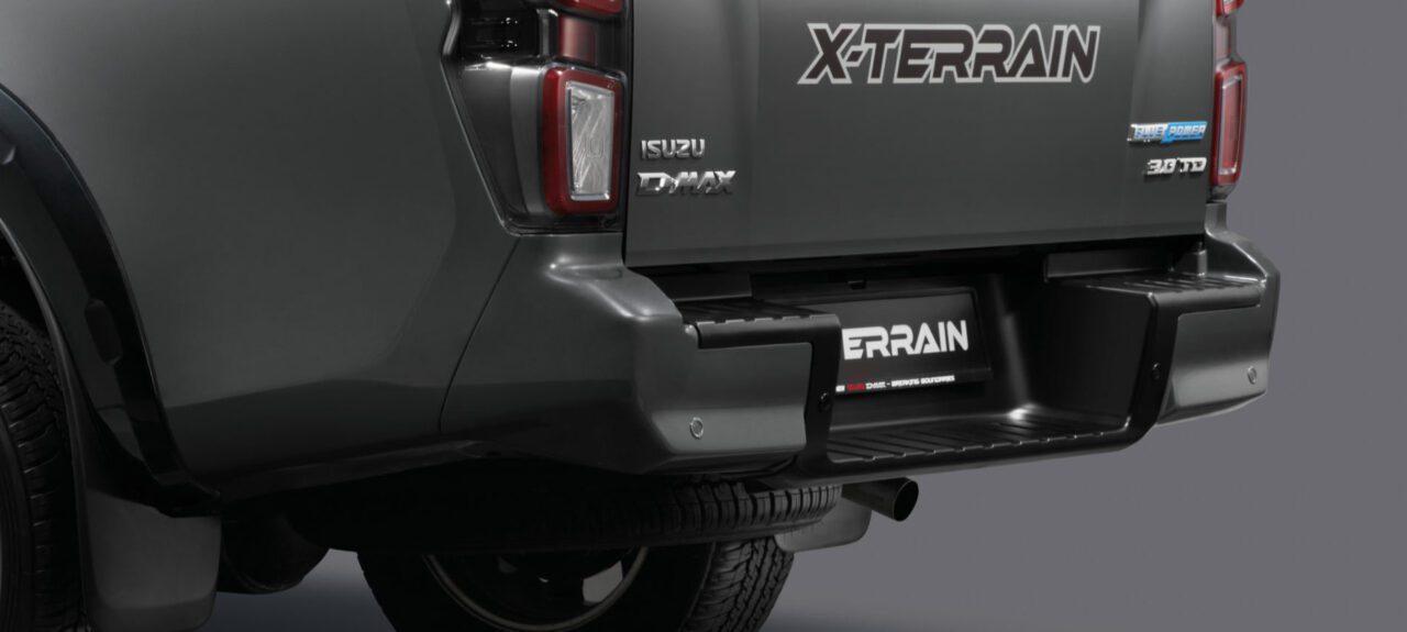 ไฟท้าย Dual-Sonic LED มามาดโหดโทนสีเข้ม Black Chrome พร้อมไฟตัดหมอกหลัง เสาอากาศแบบเสาสั้น บันไดข้าง กันชนหลังดีไซน์กลมกลืนกับตัวรถ แต่มีออปชันเฉพาะบ่งบอกตัวตน ตั้งแต่ กระจกมองข้างโครเมียม ส่วนในรุ่น X-TERRAIN มาพร้อมชุดแต่งแบบเดียวกับ ISUZU V-Cross 4×4 สเปกไทย ทั้ง การ์ดเสริมกันชนหน้า คิ้วขอบล้อสีดำ ราวหลังคาดีไซน์กลมกลืนกับตัวรถ และไฟส่องพื้นรถ