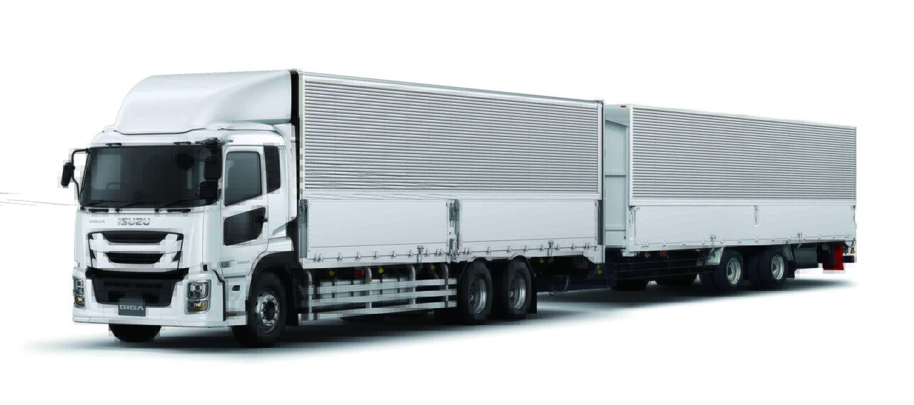 สำหรับ ISUZU GIGA ช่วงแรกจะจำหน่ายแบบรถบรรทุกหัวลากเพลาเดียว 4X2 กับฝาแฝด UD Quon รุ่น GK 4×2 tractor ที่เปิดตัวพร้อมกันที่ญี่ปุ่น