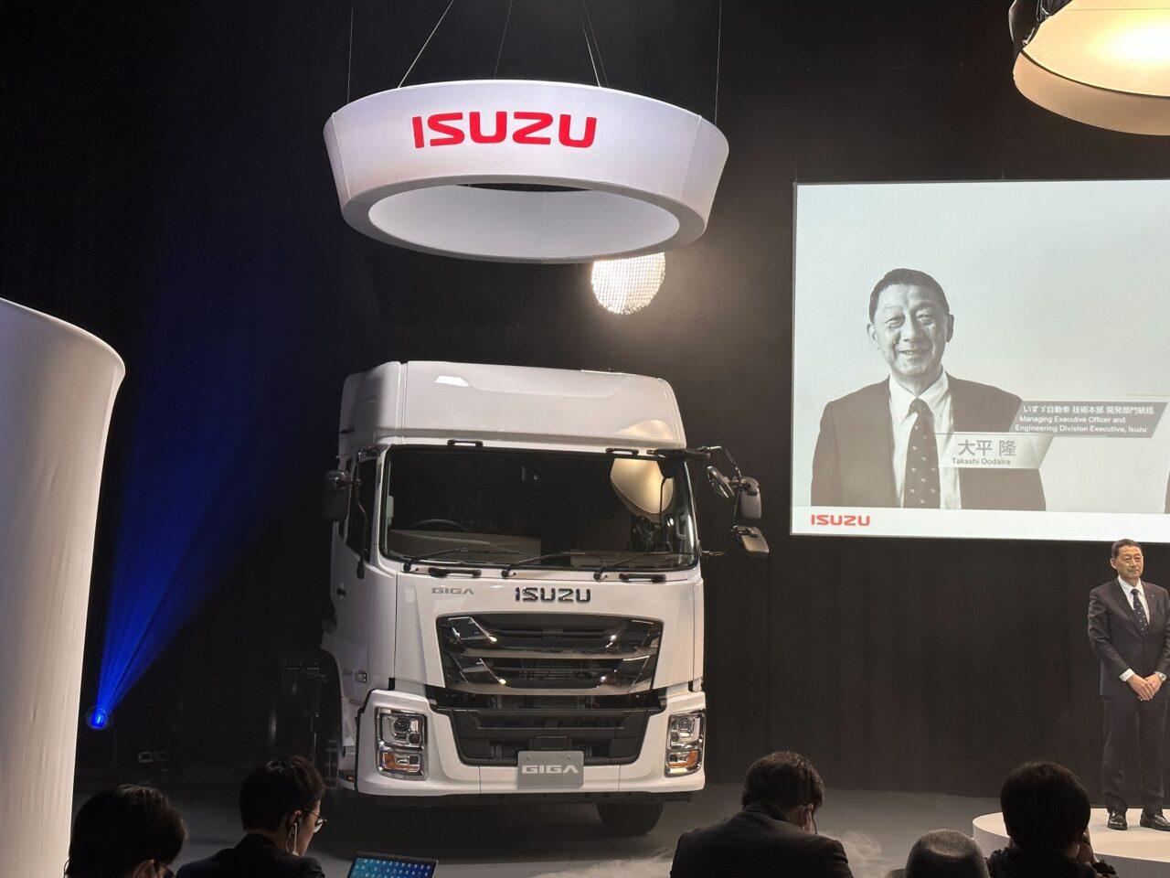จากที่เคยเป็นพันธมิตรระหว่าง ISUZU กับ Volvo มาตั้งแต่ปี 2017 สำหรับรถบรรทุกรุ่นแรกของ ISUZU ที่คอลลแปร่วมกับทาง UD Trucks นั่นก็คือ ISUZU GIGA เจเนอเรชันที่ 3 ซึ่งแน่นอนว่าเป็นการนำพื้นฐานของ UD QUON มาทั้งหมดปรับดีไซน์ให้เป็นในสไตล์ ISUZU ตามแผนการดำเนินการระยะกลางปี 2024 (ช่วงงบการเงินปี 2022- 2024)ตั้งแต่กระจังหน้าทรงสองชั้น พร้อมโลโก้ ISUZU บนกระจังหน้า โดยตัวรถมีความยาว 5,620 มม. ความกว้าง 2,490 มม. ความสูง 3,362 มม. ฐานล้อ 3,200 มม. น้ำหนักรถ 6,820 กก. และรับน้ำหนักมาถึง 11,500 กก. กับรหัสตัวรถ 2RG-EK5DAB