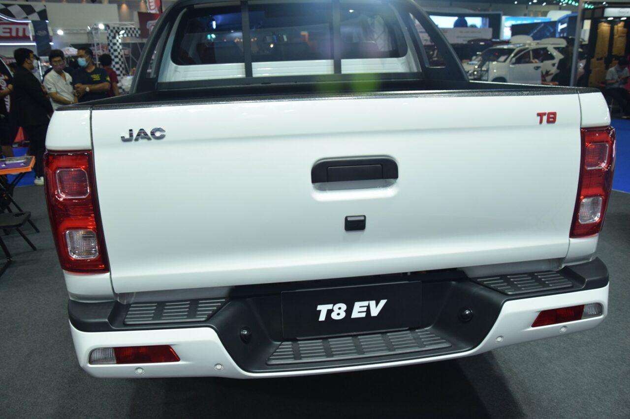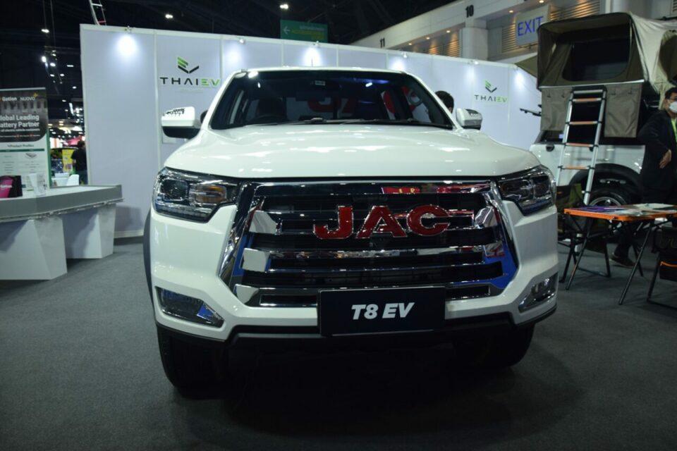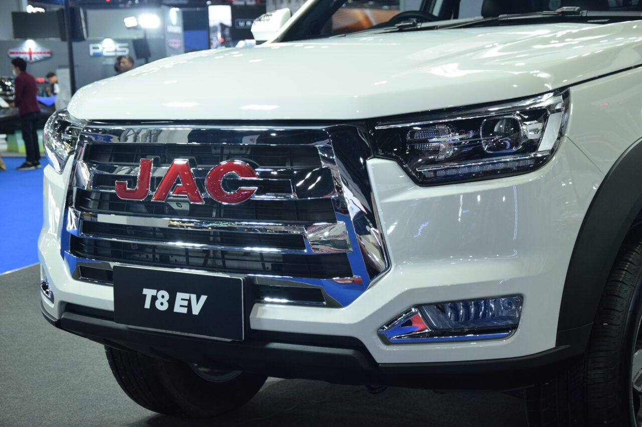 ในชื่อ JAC T8 EV ในร่างกระบะสี่ประตู หน้าตาอาจจคล้ายกับ Toyota Hilux Vigo หรูหราด้วยชุดโครเมียมจากกระจังหน้าพร้อมไฟหน้า Projector พร้อมไฟส่องกลางวัน DRL LED ในโคมเดียวกัน รับกับกันชนหน้าทรงเท่ ประดับด้วยไฟตัดหมอกหน้า ด้านข้างบึกบึนกับดีไซน์ที่แกร่งฉกาจ