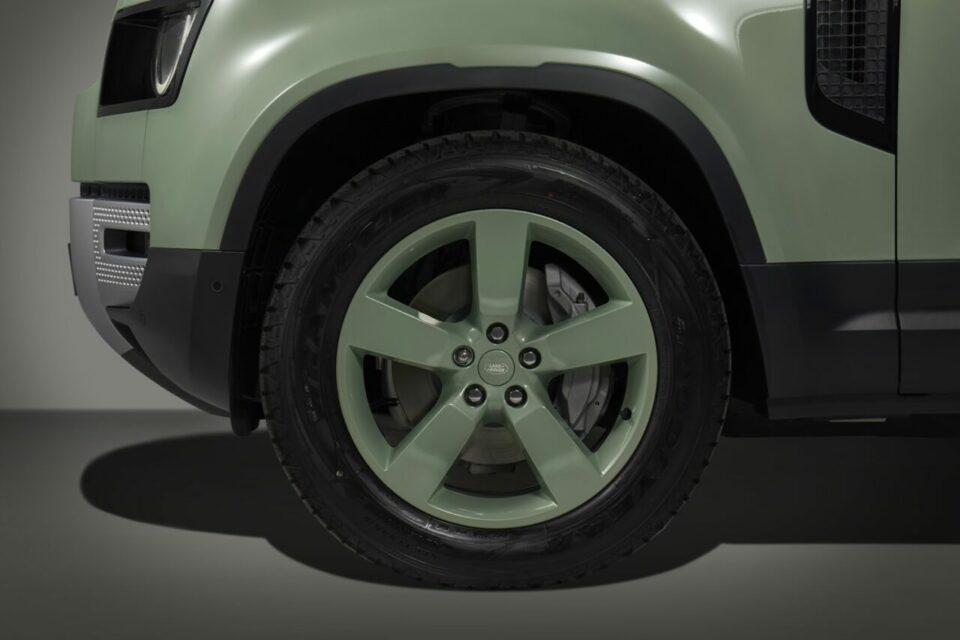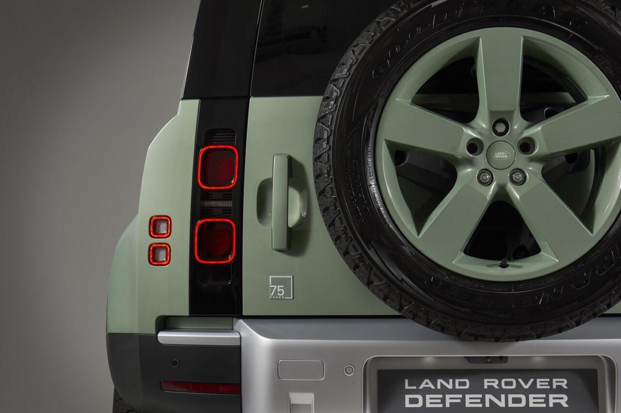 ด้วยการนำรุ่น 110 HSE Plug In Hybrid มาตกแต่งพิเศษสีภายนอก Glasmill Green สุดโดดเด่น ซึ่งเป็นเฉดสีที่สงวนไว้สำหรับรุ่น 75th Limited Edition โดยเฉพาะ ล้ออัลลอยขนาด 20 นิ้วมาในสี Grasmere Green และยางสำหรับการใช้งานในทุกฤดูกาลเพื่อเพิ่มประสิทธิภาพการขับขี่บนเส้นทางออฟโรดขนาด 255/60R20 พร้อมฝาปิดเซ็นเตอร์แคปที่เข้าชุด การตกแต่งภายนอกสมบูรณ์ยิ่งขึ้นด้วยกราฟิกฉลอง 75 ปี