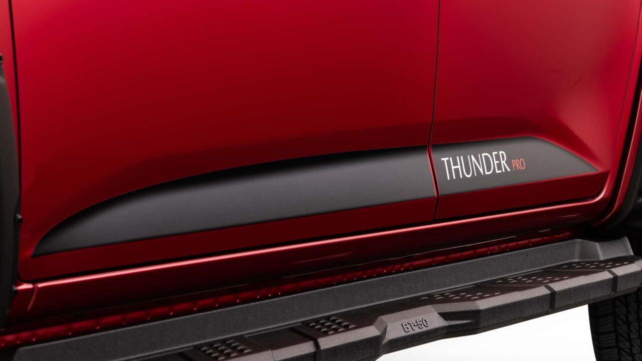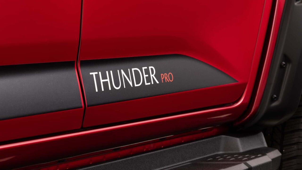 ส่วนชุดแต่งของรุ่น Thunder 4 ประตูมีดังนี้ ชุดแต่งกันชนออฟโรดหน้า Bull Bar สีดำที่ได้รับการรับรองจาก ADR-approved ไฟสปอตไลท์LED Light Bar แนวยาว ช่วงล่างพิเศษจาก Old Man Emu BP-51 พร้อมโช๊คอัพไนโตรเจน สน็อกเกิ้ลติดบังโคลนรถขวามือ ไฟสปอตไลท์ LED ทรงกลมจาก Lightforce และสติ๊กเกอร์ Thunder PRO คาดยาวชายล่างประตูในราคาทั้งหมด $9,046 หรือราว 215,000 บาท