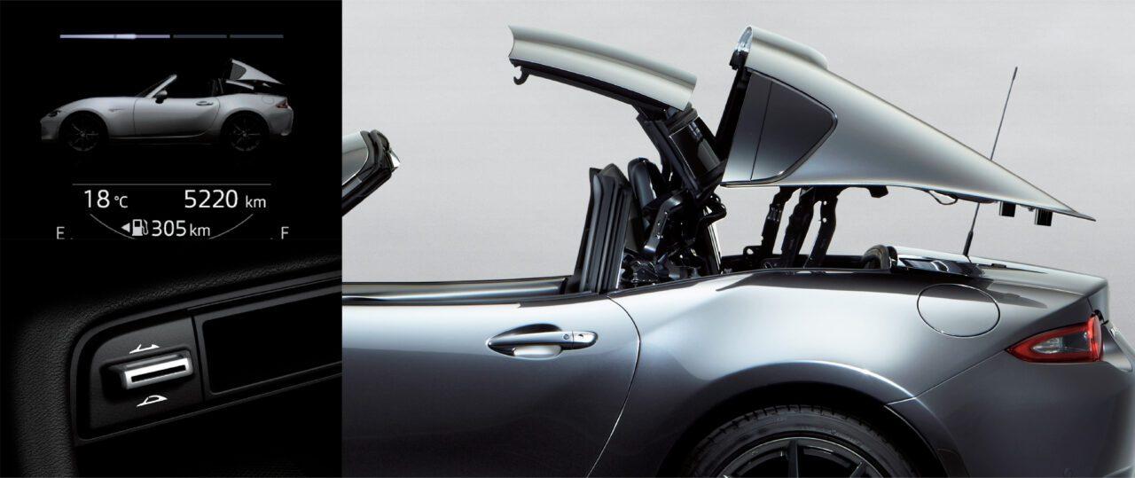 ถึงจะเพิ่มสีใหม่แต่เอกลักษณ์เฉพาะตัวตามแนวทางการออกแบบและการขับขี่ที่สนุกสนานเร้าใจบนพื้นฐานเดิมทั้งไฟหน้า LED แบบ Four-Lamp พร้อมไฟ DRL และไฟท้าย LED ล้ออัลลอยลายเดิมสีดำเมทาลิคขนาด 17 นิ้ว พร้อมยาง 205/45 R17 พร้อมหลังคาแข็ง RF Retractable Fastback ที่ด้านบนหลังคาถอดได้และส่วนด้านหลังสามารถพับเก็บได้ ในเวลา 12 วินาที กับความเร็วไม่เกินที่ 10 กม./ชม.