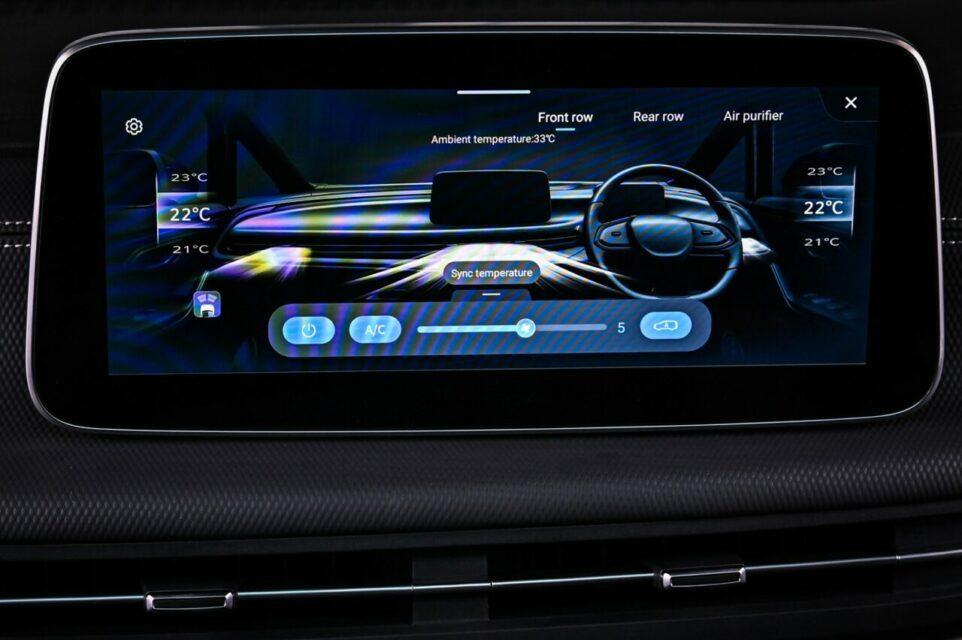 ภายในล้ำอนาคตกับแผงคอนโซลแบบ Double Layer หน้ามีจอสัมผัสขนาดใหญ่ลากเป็นแนวยาวซึ่งจะมีปุ่มที่จำเป็นต่อการใช้งานไม่มากมายเท่าไหร่เพราะส่วนมากจะไปอยู่ในระบบความบันเทิงแบบจอสัมผัส 12.3 นิ้วรองรับ Apple Car Play และ Android Auto ผ่าน QD Link พร้อมลำโพง 12 จุด ช่องเชื่อมต่อ USB 9 จุด พวงมาลัยมัลติฟังก์ชัน มาตรวัดดิจิตอล 7 นิ้ว กระจกมองหลังปรับแสงอัตโนมัติเป็นกล้องมองด้านหลังผ่านจอที่กระจกได้แบบ Streaming Media Rearview Mirror ระบบปรับอากาศแบบอัตโนมัติแยกอิสระสามจุดทั้งด้านหน้าซ้าย-ขวา และบริเวณด้านหลังหลังแบบอิสระ พร้อมระบบกรองอากาศ PM 2.5 กุญแจนิรภัยแบบอัจฉริยะพร้อมระบบ Push Start และที่ชาร์จมือถือไร้สาย