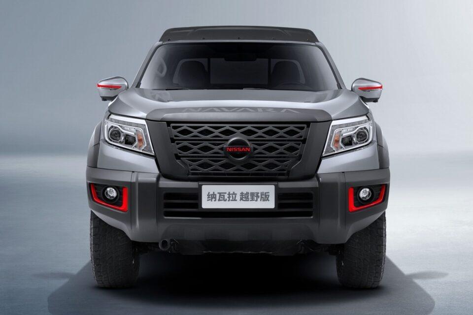 ล่าสุด Zhengzhou Nissan ในเครือ Dongfeng Nissan เปิดตัวเวอร์ชันโหดออฟโรดแต่งดุทั้งคันตั้งแต่ กระจังหน้า Interlock ขนาดใหญ่กว่าเวอร์ชันไทยพร้อมโลโก้ Nissan และชื่อ Navara สลักบนขอบกระจังหน้าพร้อมกันชนหน้าสีดำออกแบบใหม่สไตล์ดุพร้อมขอบไฟตัดหมอกหน้าสีแดงมีแผ่นกันกระแทกใต้ท้องรถ คิ้วขอบล้อขนาดใหญ่สีดำสลักชื่อ Navara ไว้ ล้ออัลลอยเข้มสีดำเข้มพร้อมยาง All Terrain จาก Giti คาดว่าจะเป็นขนาด 265/65R17