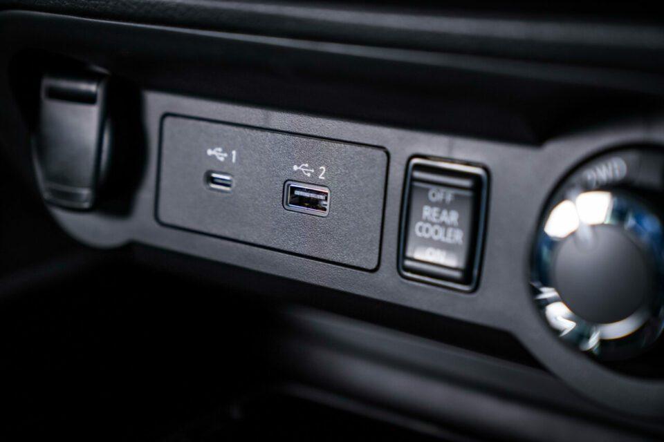ช่องชาร์จ USB สำหรับผู้โดยสารแถวทีสามโดยทั้งคันมี USB-A 3 จุด และ USB-C 2 จุด รองรับการเชื่อมต่ออุปกรณ์ เบรกมือไฟฟ้า ที่ชาร์จมือถือไร้สาย เครื่องปรับอากาศแยกอุณหภูมิซ้าย-ขวา ด้านหลัง และกระจกมองหลัง Intelligent Rear View Mirror