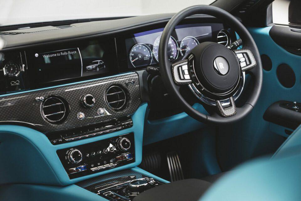 สะดุดตากับสีตัวถังแบบทูโทน คือ เทา Anthracite ตัดกับ ดำ Black Diamond ขณะที่สัญลักษณ์นางฟ้า หรือ Spirit of Ecstasy รวมถึงกระจังหน้า คิ้วขอบกระจก และปลายท่อไอเสีย เป็นโครเมียมรมดำ ซึ่งผ่านกรรมวิธีการชุบโลหะด้วยกระแสไฟฟ้า ผสานขั้นตอนการชุบแบบดั้งเดิมบนชิ้นงานสเตนเลส ส่งผลให้ได้พื้นผิวที่มีสีเข้ม ลงตัวกับล้อแม็กขอบ 21 นิ้ว ผลิตจากวัสดุคาร์บอนคอมโพสิต ซึ่งติดตั้งกับ โรลส์-รอยซ์ แบล็กแบดจ์ เท่านั้น
