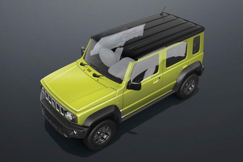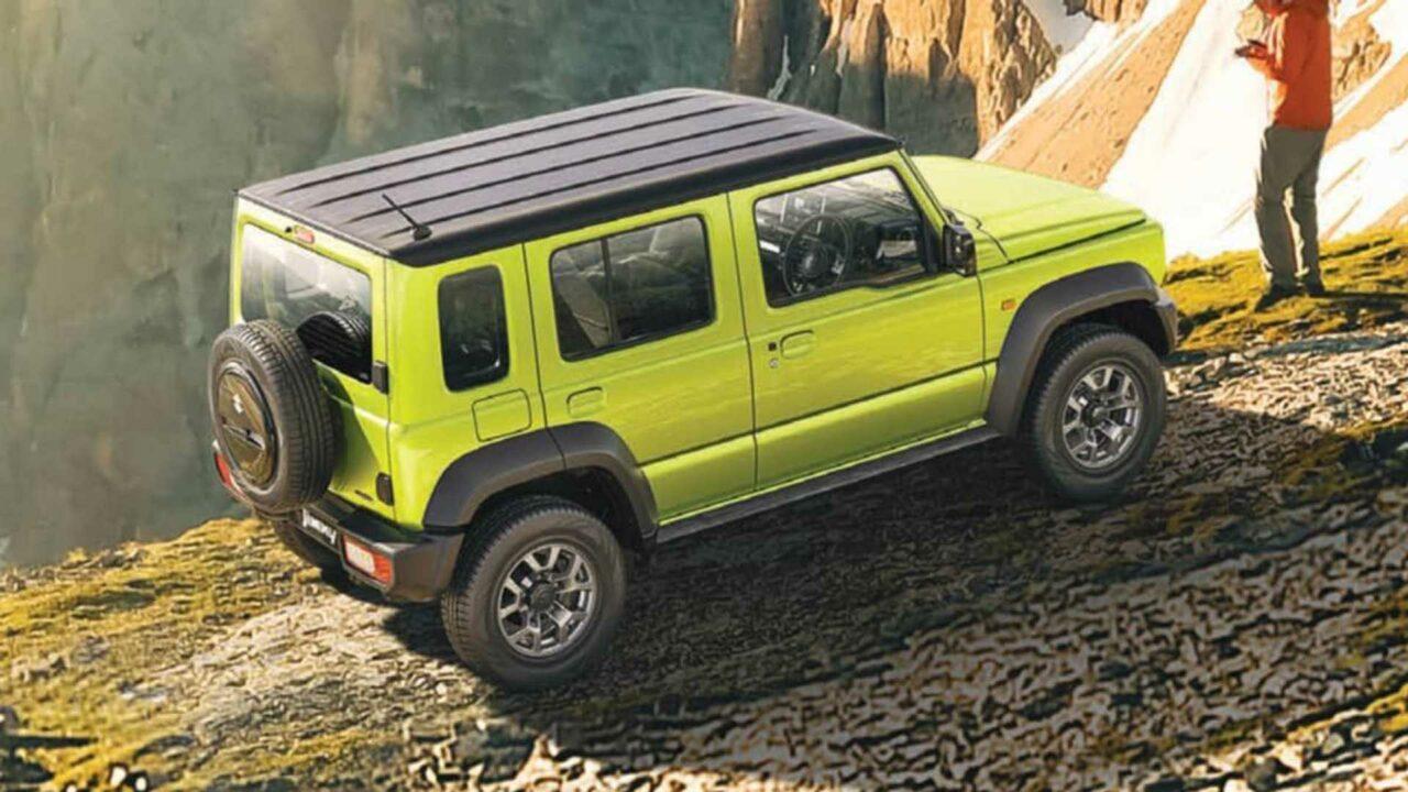 Suzuki Jimny เวอร์ชัน 5 ประตูนี้นำพื้นฐานรุ่น 3 ประตู มาขยายความยาวเป็น 3,985 มม. ความกว้าง 1,645 มม. ความสูง 1,720 มม. ฐานล้อ 2,590 มม. ความสูงจากใต้ท้องรถ 210 มม. และความจุถังน้ำมัน 85 ลิตร โดยเมื่อเทียบกับรุ่น 3 ประตูจะพบว่าตัวรถรุ่น 5 ประตูยาวกว่ารุ่น 3 ประตูเพียง 340 มม. และฐานล้อยาวกว่ารุ่น 3 ประตูเพียง 340 มม. เช่นกัน นอกนั้นเท่ากับรุ่น 3 ประตู
