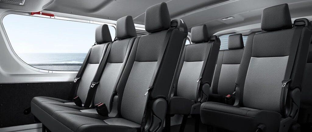 ภายในตอบโจทย์การใช้งานอย่างครบครันสบายแบบ 12 ที่นั่งรวมคู่หน้าสามที่นั่งพร้อมออปชันครบครันทั้ง พวงมาลัย 3 ก้าน มาตรวัดพร้อมจอแสดงข้อมูล MID เครื่องปรับอากาศหมุนแบบ Full Mode Control คันเกียร์ออกแบบใกล้ชิดกับคนขับและเบรกมือแบบคันโยกข้างเบาะคนขับ ที่วางแก้ว ช่องจ่ายไฟ 12 V และกุญแจรีโมทแบบไข