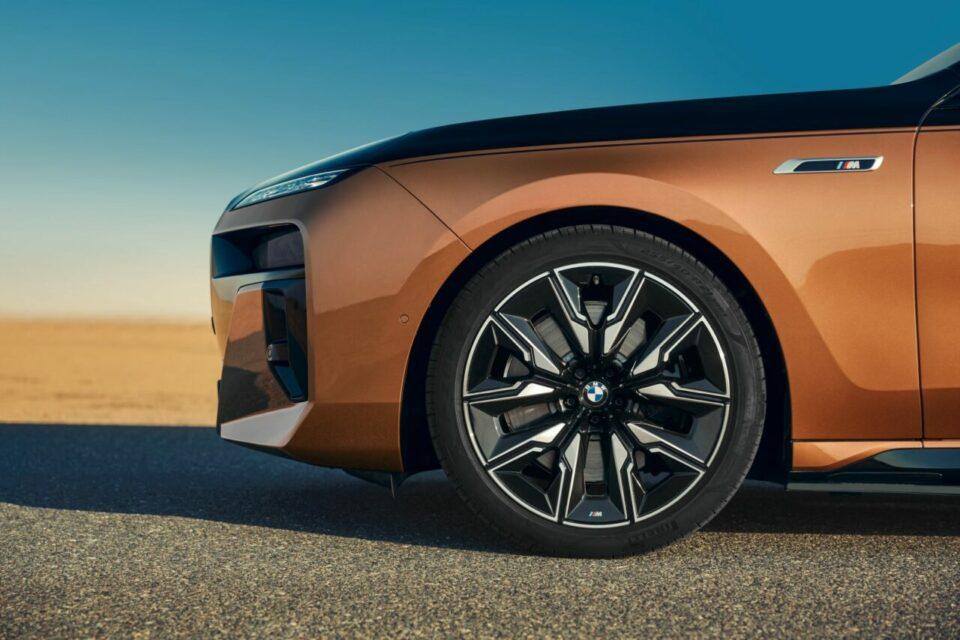 จึงเป็นที่มาของการเปิดตัว BMW i7 M70 xDrive รุ่นท็อปสุดของตระกูล i7 โดยเปิดตัวครั้งแรกที่งาน Shanghai Auto Show 2023 อย่างเป็นทางการ ภายนอกปรับเปลี่ยนเล็กน้อยให้สมกับความเป็นรุ่นท็อปตั้งแต่ กระจังหน้าไตคู่ขนาดใหญ่สีดำเงาล้อมรอบด้วยไฟเรืองแสงเพิ่มความโดดเด่น ติดโลโก้ M หลายจุดทั้งบริเวณกระจังหน้า แก้มด้านข้าง ฝาท้าย กระจกมองข้างสไตล์ M แบบมีปีกส่วนบนเพิ่มความดุไปอีกแบบ ล้ออัลลอยลายเข้มสีดำ Jet Blackขนาด 21 นิ้วน้ำหนักเบาหุ้มด้วยยางแบบสปอร์ตด้วยยางหน้าขนาด 255/40 R 21 และยางหลังขนาด 285/35 R 21 พร้อมคาลิปเปอร์เบรกสีน้ำเงินและจานเบรกขนาดใหญ่