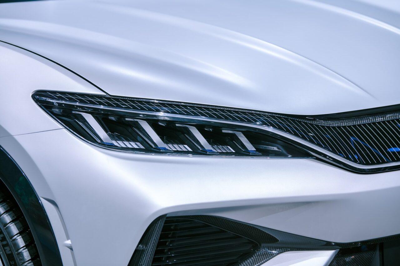 BYD Song L Concept ในร่าง Fastback ผสานความเป็นรถสปอร์ตกับรถลุยไว้ในคันเดียวกันออกแบบเริ่มที่ด้านหน้ากับไฟหน้า LED 3 ดวง กับตรา Song ภาษาจีน ที่เด่นสง่ารับกับกันชนหน้าทรงสปอร์ตด้านข้างดุดันด้วยช่องระบายอากาศสีดำซ้าย-ขวา ที่เปิดประตูซ่อนรูปตัวถัง กระจกรถไร้กรอบแบบ Hardtop เป็นสไตล์โอเปร่า
