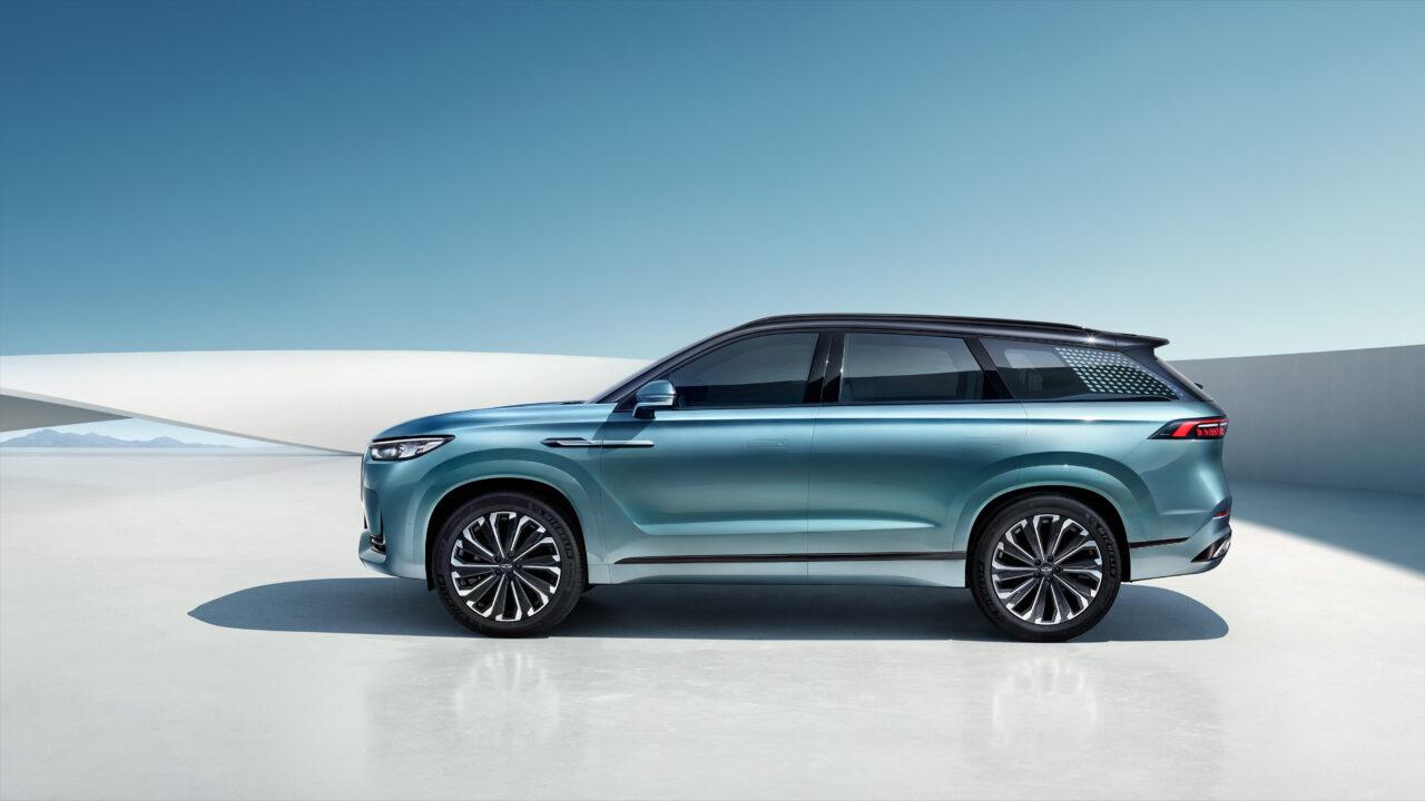 ด้านข้างมาพร้อมที่เปิดประตูดีไซน์เนียนกับตัวถังรถ กระจกมองข้างทรงสปูน พร้อมล้ออัลลอยเลือกได้ทั้งขนาด 19 กับ 20 นิ้ว หลังคารถออกแบบอย่างเฉียบขาดพร้อมไฟท้าย LED แนวยาวประดับด้วยตัวอักษร Chery ประกบด้วยกันชนหลังทรงหรู