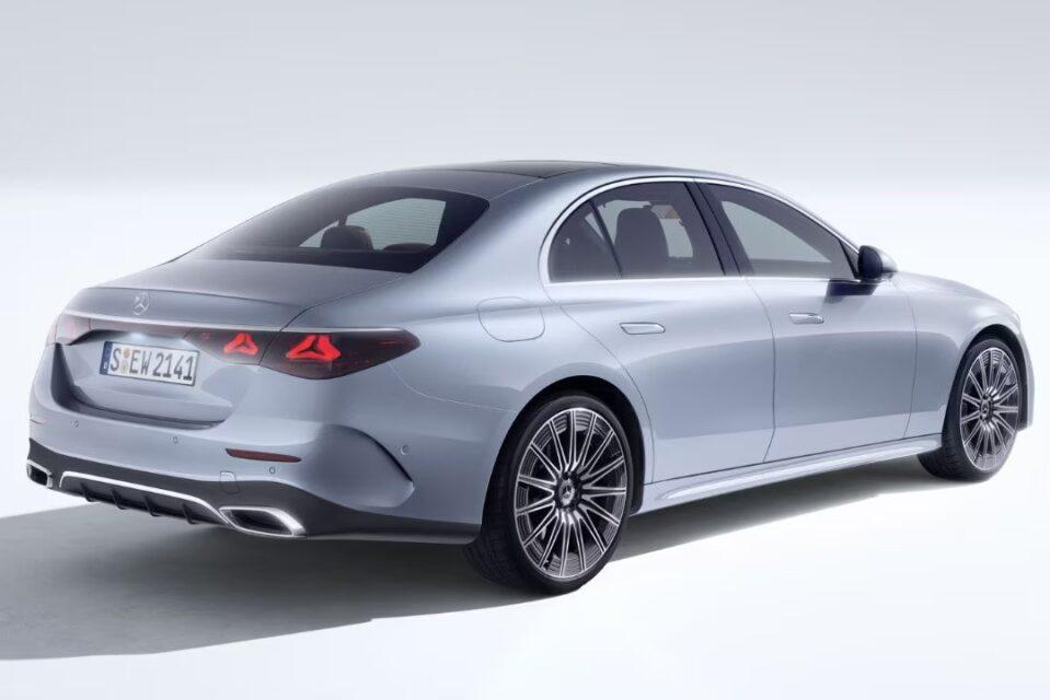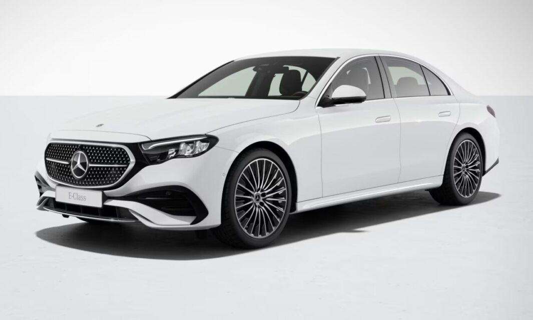 Mercedes-Benz E-Class เจเนอเรชันที่ 11 รหัส W214 ผสมผสานกันระหว่างพี่ใหญ่ S-Class V223 และ C-Class W206 น้องเล็กผสานจนเกิดเป็นความหล่อลงตัวด้วยกระจังหน้าทรงหกเหลี่ยมดีไซน์ลักชัวรีอันเป็นเอกลักษณ์เด่นค่ายนี้คล้ายๆกับรุ่นพี่ S-Class ขอบสีดำและมีกระจังหน้าทรงตราดาวขนาดใหญ่ด้วย ประกบกับไฟหน้า LED high-performance ทำงานร่วมกับระบบปรับไฟสูงอัตโนมัติ Adaptive Highbeam Assist ทรงสวยแบบทรงปีกเมื่อเข้ามารวมกับไฟ DRL แบบ LED บนโคมถึง 2 ชั้น