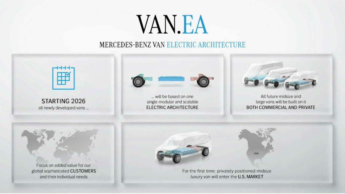 นอกจากนี้ยังแนะนำแพลตฟอร์มรถตู้แบบใหม่ VAN.EA platform เผยในช่วงปี 2026 แบ่งแชสซีส์เป็นสามส่วนได้แก่ ส่วนแรกสำหรับมอเตอร์ไฟฟ้าหน้าที่แชร์ร่วมกับรุ่นอื่นๆ ส่วนที่สองพัฒนาให้รองรับแบตเตอรี่แรงดันสูงมีความจุแบตที่หลากหลาย และส่วนสุดท้ายติดตั้งระบบขับเคลื่อนมอเตอร์ไฟฟ้าหลังสำหรับรุ่นขับเคลื่อนสี่ล้อ ไว้สำหรับรถตู้ทั้งแบบขนส่งเชิงพาณิชย์ ขนส่งส่วนบุคคลและกิจกรรมกลางแจ้งและยังสามารถวิ่งไกลสุดถึง 500 กม. ครอบคลุมทั้งดีไซน์ ระบบส่งกำลัง แชสซีส์ และยางรถยนต์