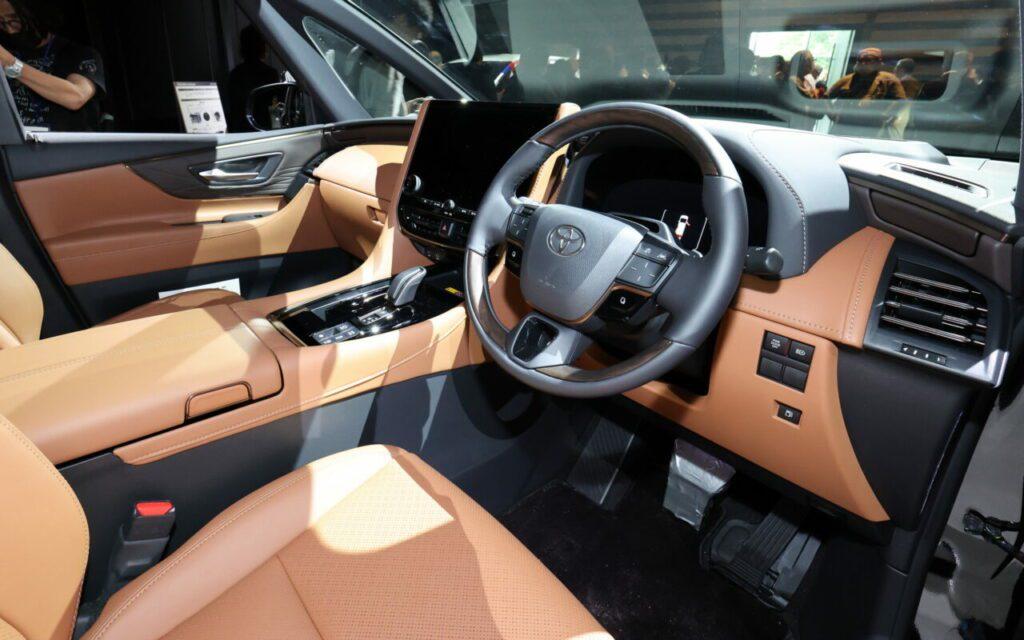 ภายในอลังการกับงานออกแบบเริ่มที่ชุดแผงคอนโซลหน้าที่ไปคล้ายกับ Lexus LM มีจอสัมผัสขนาดใหญ่ตั้งแต่ 9.8 กับ 14 นิ้วรองรับการเชื่อมต่อผ่านแอป T-Connect เชื่อมต่อได้ทั้ง Apple CarPlay และ Andorid Auto ถัดลงมาเป็นปุ่มการทำงานของจอสัมผัสและเครื่องปรับอากาศแยกอุณหภูมิ พร้อมมาตรวัดดิจิทัล 12.3 นิ้ว และพวงมาลัยมัลติฟังก์ชัน 3 ก้านออกแบบใหม่ มีจอแสดงข้อมูลการขับขี่เหนือแผงคอนโซลหน้า Head-Up Display