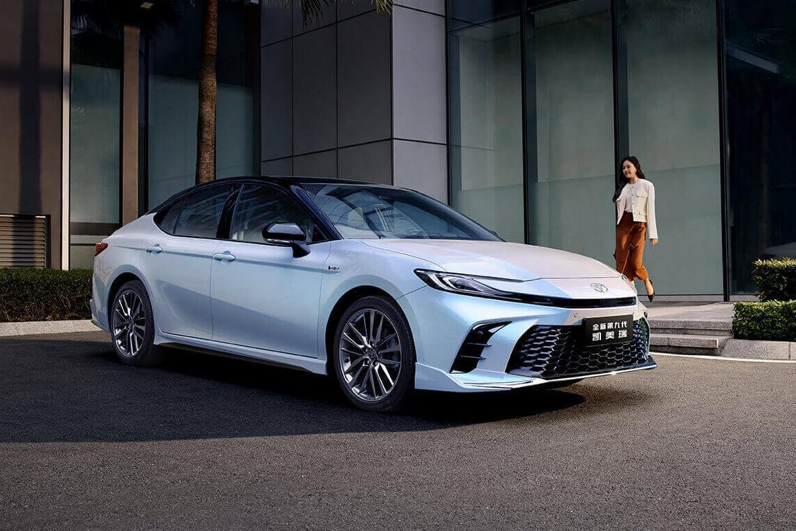 ล่าสุดทาง GAC Toyota เปิดราคาขายล่วงหน้าหรือ Pre Sales เปิดราคาในส่วนของรุ่น 2.0 ลิตรทั้งเบนซินล้วนและไฮบริด 9 รุ่นย่อยด้วยภายนอกพื้นฐานหน้าตาคล้ายกับเวอร์ชันสหรัฐฯ แต่ต่างกันที่ดีเทลเล็กน้อยเริ่มที่ด้านหน้าชุดกระจังหน้ากริตเตอร์ขอบใหญ่ปีกซ้ายขวาดีไซน์เอกลักษณ์ค่ายสามห่วงพร้อมตราโลโก้สอดรับกับชุดไฟหน้า LED ไฟส่องสว่างเวลากลางวัน DRL แบบ LED รูปตัวเลขเจ็ดและไฟเลี้ยววิ่งแต่กันชนหน้าสำหรับรุ่นปกติคนละแบบกับเวอร์ชันอเมริกาจะเป็นช่องระบายแบบทรงสี่เหลี่ยมขนมเปียกปูนและรุ่นสปอร์ตเท่จะแบบเดียวกับอเมริกาด้วยช่องระบายอากาศแนวนอนพร้อมสเกิร์ตทรงเท่ตกแต่งสีดำทั้งหมด