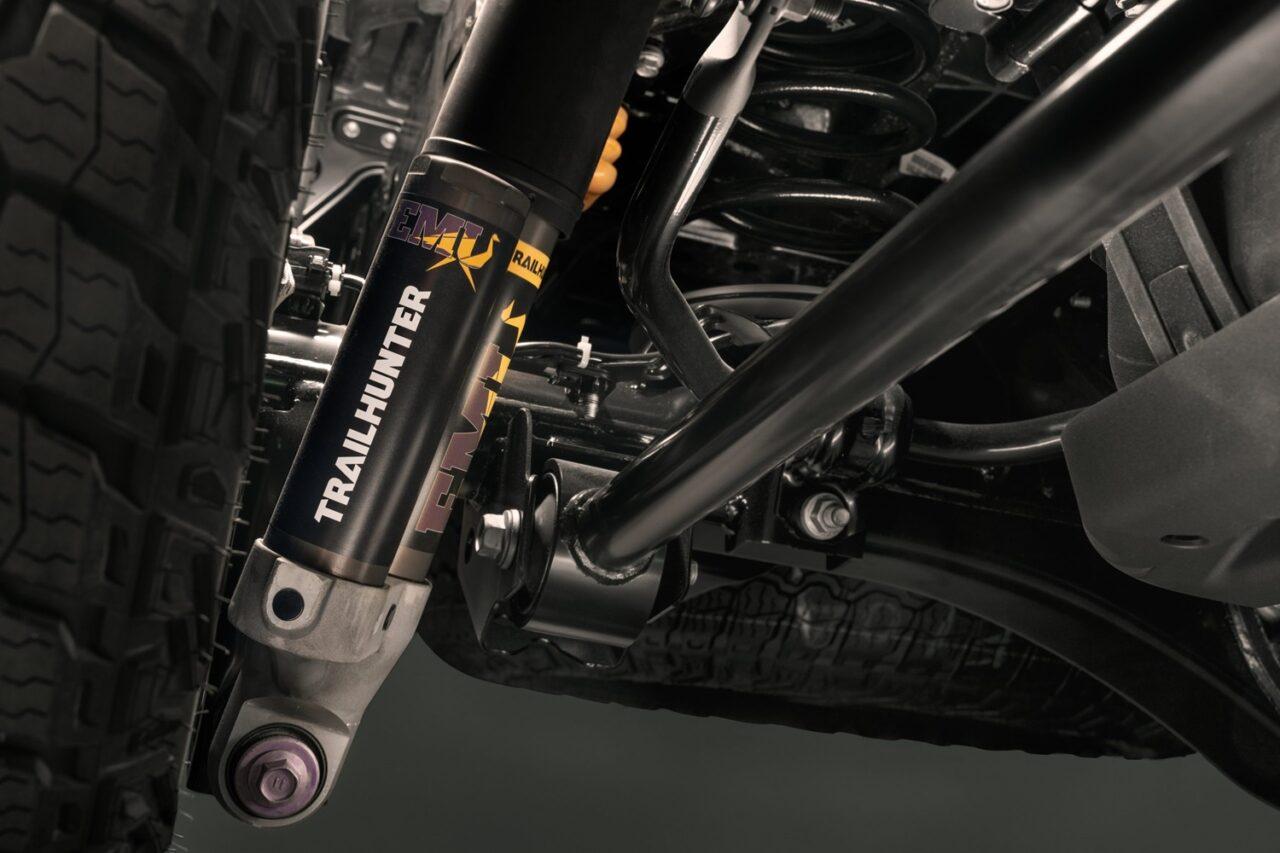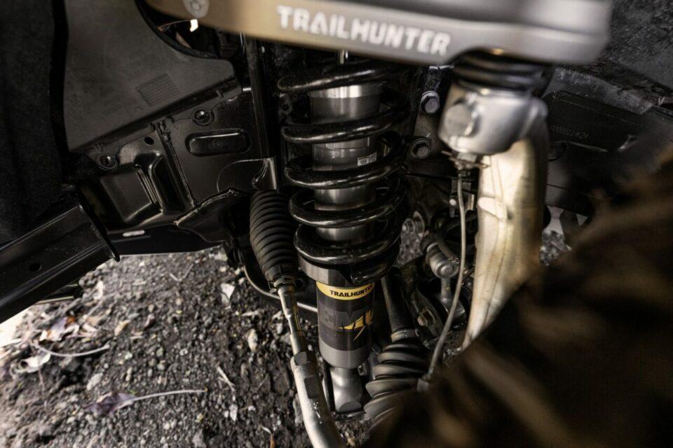 ส่วนรุ่น Trailhunter รุ่นไฮเอนท์สุดโหดมาพร้อมไฟหน้า LED ปักชื่อรุ่นและตราโลโก้เฉพาะติดด้านท้ายพร้อมกันชนหลังและตะขอลากสีแดงจาก ARB ล้ออัลลอยสีบรอนซ์ทองขนาด 18 นิ้ว ดีไซน์เฉพาะรุ่นและชุดแต่งพิเศษจาก Old Man Emu และ RIGID