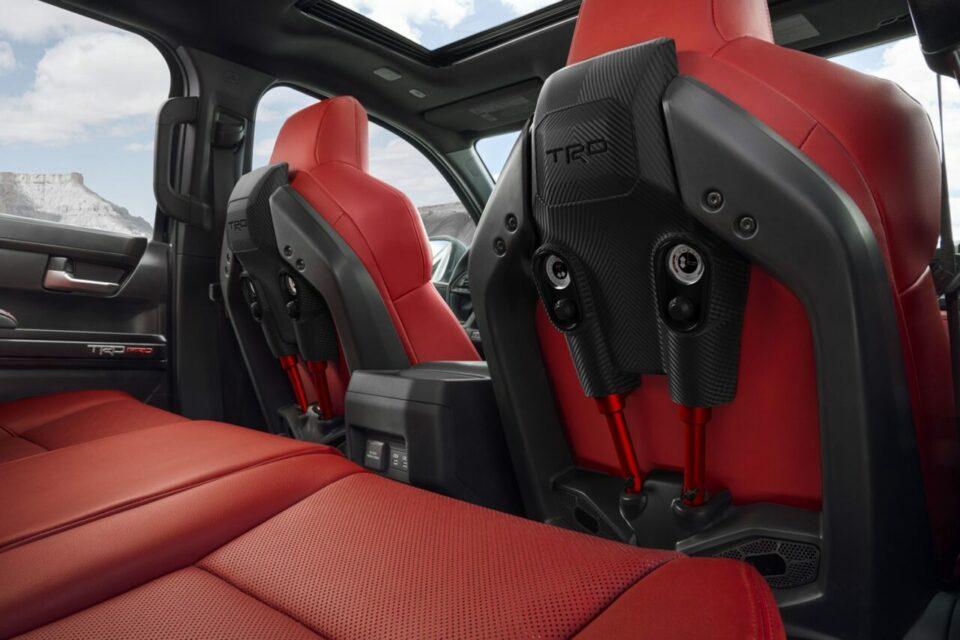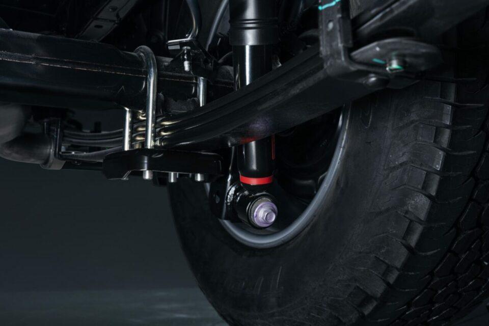 ช่วงล่างพื้นฐานทั้งแบบแหนบลีฟสปริงและคอยล์สปริง multi-link พร้อมโช้กอัพแบบบายพาสปรับได้สามทางจาก FOX พร้อมอ่างเก็บน้ำปรับปรุงประสิทธิภาพออฟโรดความเร็วสูง และตัวกระแทกด้านหลัง FOX Internal Floating Piston (IFP) ในรุ่น TRD Pro, โช้กอัพ Bilstein ในรุ่น TRD Off-Road และโช้กอัพ TRD ในรุ่น TRD Sport ส่วนรุ่น Trailhunter ได้ช่วงล่างจาก Old Man Emu (OME) 4×4 ปรับแต่งเพื่อการควบคุมแบบออฟโรดที่เหมาะสม เลือกได้ทั้งระบบขับเคลื่อนสองล้อยกสูงและขับเคลื่อนสี่ล้อ Multi-Terrain Select 4WD-High และ 4WD-Low และจอแสดงภาพการทำงานขณะขับขี่บนทางโหดในชุดจอสัมผัส Multi-Terrain Monitor แถมเปลี่ยนตำแหน่งจุดยึดออกมาวางนอกแชสซีส์รถ เหมือน Ford Ranger