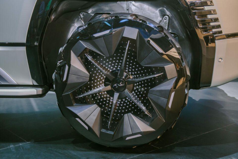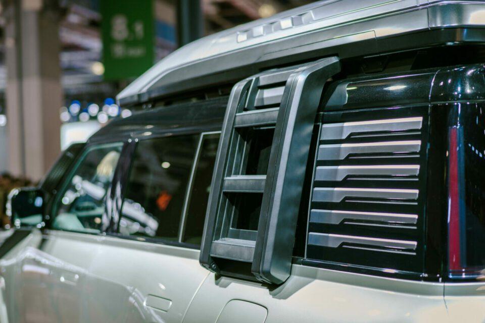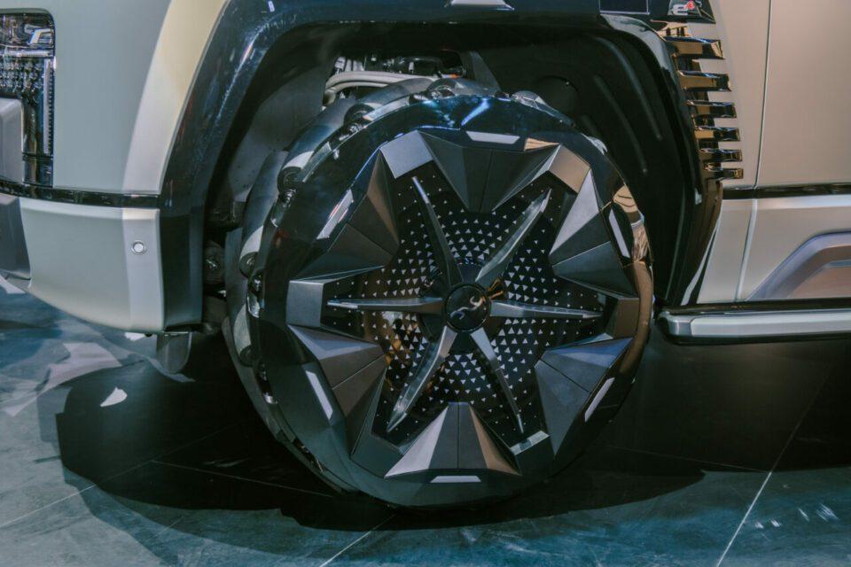 มีชุดไฟท้ายขอบกระจกแบบ LED รูปตัว L ซ้าย-ขวา กระจกมองข้างแนวตั้งพร้อมไฟเลี้ยว  ที่เปิดประตูแนวฝังเรียบเนียนกับตัวรถ และล้ออัลลอยขนาดใหญ่ 20 นิ้วพร้อมยาง 275/60R20 พื้นฐานของเอสยูวีรุ่นนี้สุดแกร่งด้วยแชสซีส์ขั้นบันได หรือ ladder-frame architecture มิติตัวรถมีขนาดใกล้เคียงกับคู่แข่งโซนยุโรปตั้งแต่ความยาว 5,300 มม. ฐานล้อ 3,050 มม. และความจุถังน้ำมัน 75 ลิตร