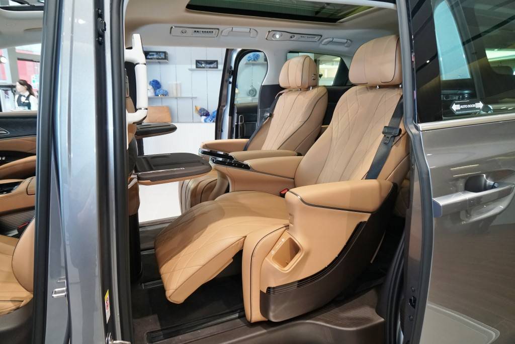 ภายในหรูหราสง่างามเทียบเท่าคู่แข่งตั้งแต่เบาะนั่งหนังแท้ 7 ที่นั่งแบบ NAPPA โดยเบาะนั่งแถวที่สองมาแบบ VIP Captain Seat พร้อมระบบจดจำตำแหน่งการนั่ง (Memory Seats) ระบบนวด เบาะอุ่น ระบายความร้อนควบคุมผ่านหน้าจอ Touch Screen พร้อมช่องวางโทรศัพท์ โต๊ะพับและที่วางแก้ว ตกแต่งด้วยวัสดุหนัง เบาะนั่งคนขับปรับด้วยระบบไฟฟ้า 12 ทิศทาง และฝั่งผู้โดยสารปรับไฟฟ้า 4 ทิศทาง ทุกที่นั่งมีระบบอุ่นเบาะ มีพื้นที่ด้านหลังขนของได้ 410-570 ลิตร กรณีไม่พับเบาะ และถ้าพับเบาะ 2,310 ลิตร ระบายอากาศ และนวดเพื่อผ่อนคลาย