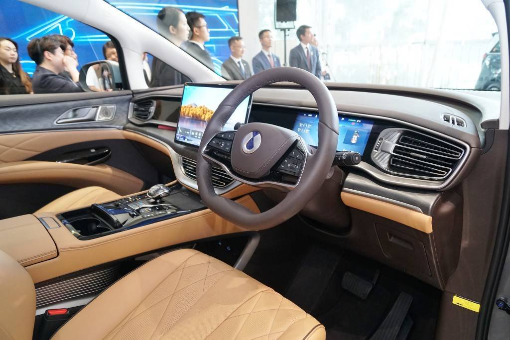 แผงคอนโซลหน้ามีจอสัมผัสขนาดใหญ่ลากเป็นแนวยาวประกอบด้วย จอสัมผัส 15.6 นิ้วรองรับ Apple Car Play และ Android Auto จอหลังเบาะคนขับคู่หน้า 2 จอขนา พร้อมลำโพง DYNAUDIO 14 จุด มีช่องเชื่อมต่อ USB ช่องจ่ายไฟ AC Adaptor 220V มาตรวัด LCD 10.25 นิ้ว พร้อม จอแสดงข้อมูลการขับขี่บนแผงคอนโซลหน้า Head Up Display ขนาด 12 นิ้ว มีไฟสร้างบรรยากาศภายใน ambient light มากถึง 128 สี กระจกมองหลังปรับแสงอัตโนมัติ
