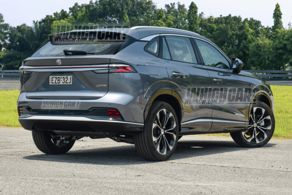 ที่เปิดประตูดึงก้าน ล้ออัลลอยขนาด 18 นิ้ว พร้อมยาง 215/60R18 และขนาด 19 นิ้ว พร้อมยาง 225/55R19 ไฟท้าย LED แนวยาวครอบทับด้วยเส้นแนวนอนนอนและกันชนหลังโดดเด่นมีระดับ ตัวรถยืมพื้นฐานของ Roewe RX5 มาเปลี่ยนตัวตนให้กลายเป็น MG นั่นเอง ด้วยความยาว 4,655 มิลลิเมตร ความกว้าง 1 ,890 มิลลิมเตร ความสูง 1,664 มิลลิเมตร ระยะฐานล้อ 2,765 มิลลิเมตร น้ำหนักรถ 1,840 กิโลกรัม เมื่อเทียกับ HS รุ่นปัจจุบัน พบว่ายาวกว่า 81 มิลลิเมตร กว้างกว่า 14 มิลลิเมตร ความสูงเท่ากันและระยะฐานล้อสั้นกว่า 20 มิลลิเมตร