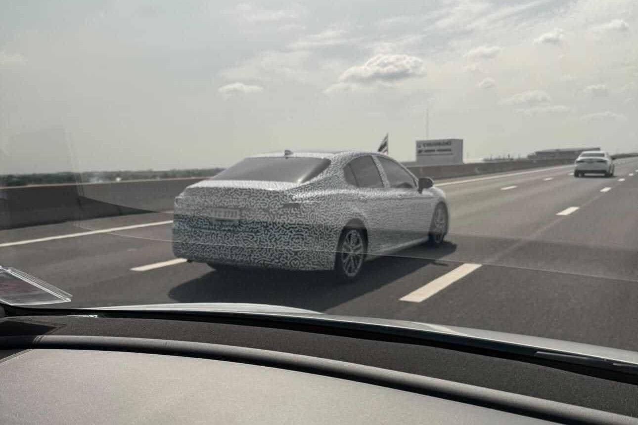 ล่าสุดทางเพจ TOYOTA CAMRY HEV 2025 CLUB THAILAND เผยภาพ Spy Shot เก๋งใหญ่พรางตัววิ่งบนทางด่วนทางพิเศษบูรพาวิถี บางนา-ตราด เพื่อทดสอบในขั้นตอนสุดท้ายก่อนประกอบในไทยและขายจริง แน่นอนว่านี่คือ Camry เจนใหม่นั่นเอง ครั้งนี้ตั้งใจมาถล่มคู่แข่งตัวเอ้อย่าง Honda Accord เจเนอเรชันที่ 11  ภายนอกมาพร้อมรูปลักษณ์ดีไซน์คล้ายกับ Toyota Crown, Prius และ Lexus ตั้งแต่ชุดกระจังหน้ากริตเตอร์ขอบขอบใหญ่ปีกซ้ายขวาดีไซน์เอกลักษณ์ค่ายสามห่วงพร้อมตราโลโก้สอดรับกับชุดไฟหน้า LED ไฟส่องสว่างเวลากลางวัน DRL แบบ LED รูปตัวเลขเจ็ดและไฟเลี้ยววิ่ง กันชนหน้าออกแบบให้มีช่องระบายอากาศขนาดใหญ่และมีช่องเว้ามุมกันชนซ้าย-ขวาแบบสปอร์ต