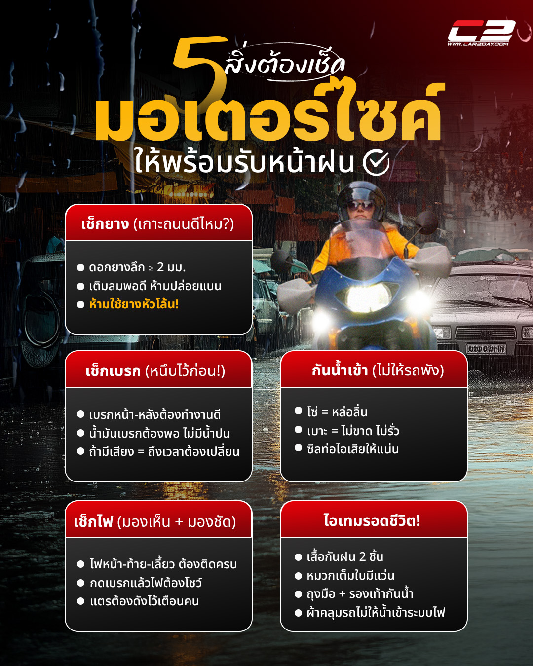 เช็กครบทุก 5 ข้อนี้ ก็พร้อมควบสองล้อฝ่าฝนไปได้ทุกที่เลย!